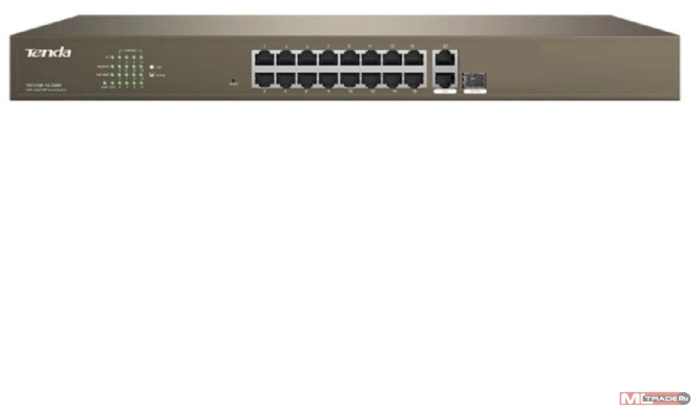 Сетевое оборудование TENDA TEF1218P-16-250W Коммутатор управляемый PoE, 18 портов, 16х100 Мбит/ с, 2x1 Гбит/ с, SFP 1x1 Гбит/ с