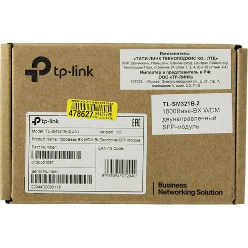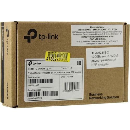 Сетевое оборудование TP-Link SMB TP-Link SM321B-2 WDM SFP-трансивер, 1000Base-BX (Simplex LC), Tx: 1310нм, Rx: 1550нм, одномод, до 2км