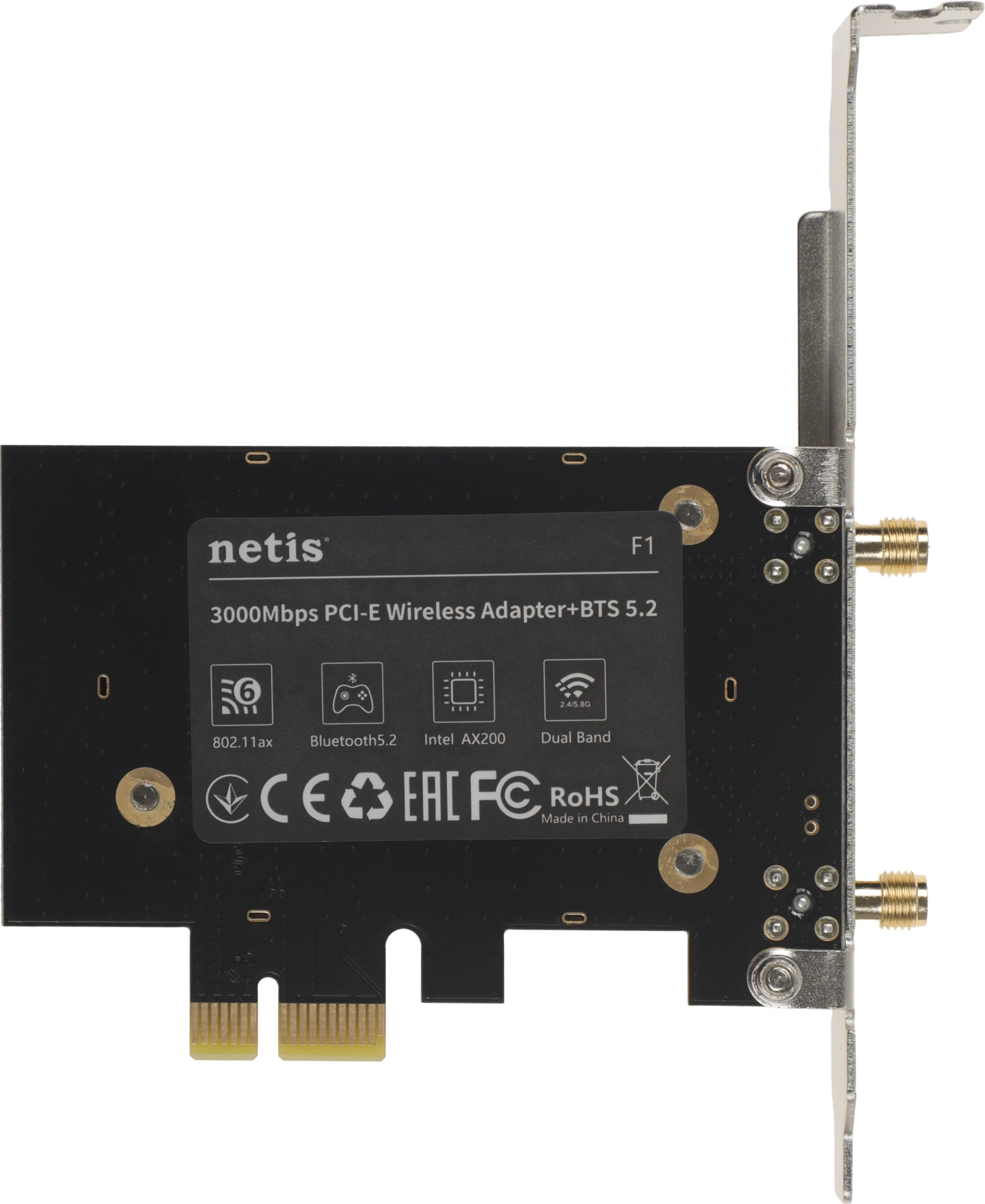 Сетевой адаптер Wi-Fi + Bluetooth Netis F1 AX3000 PCI Express (ант.внеш.съем) 2ант.