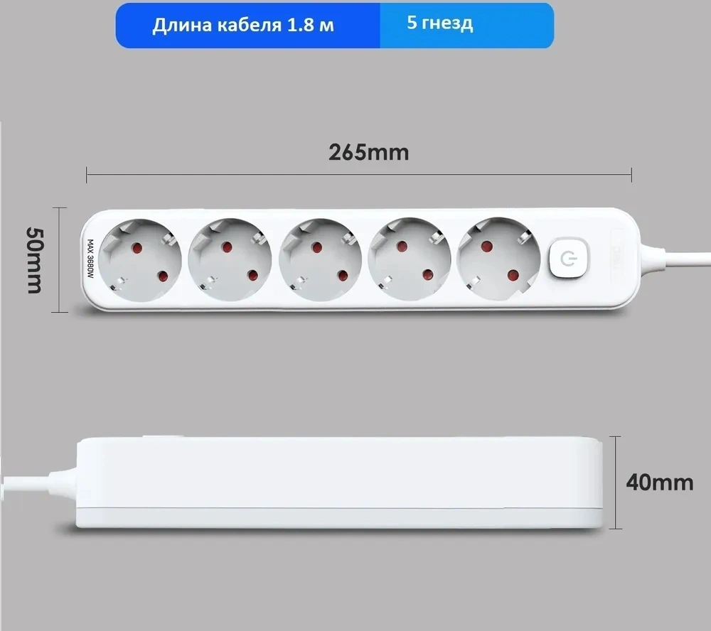 Сетевой фильтр Deli ET437 1.8м (5 розеток) белый (пакет ПЭ)