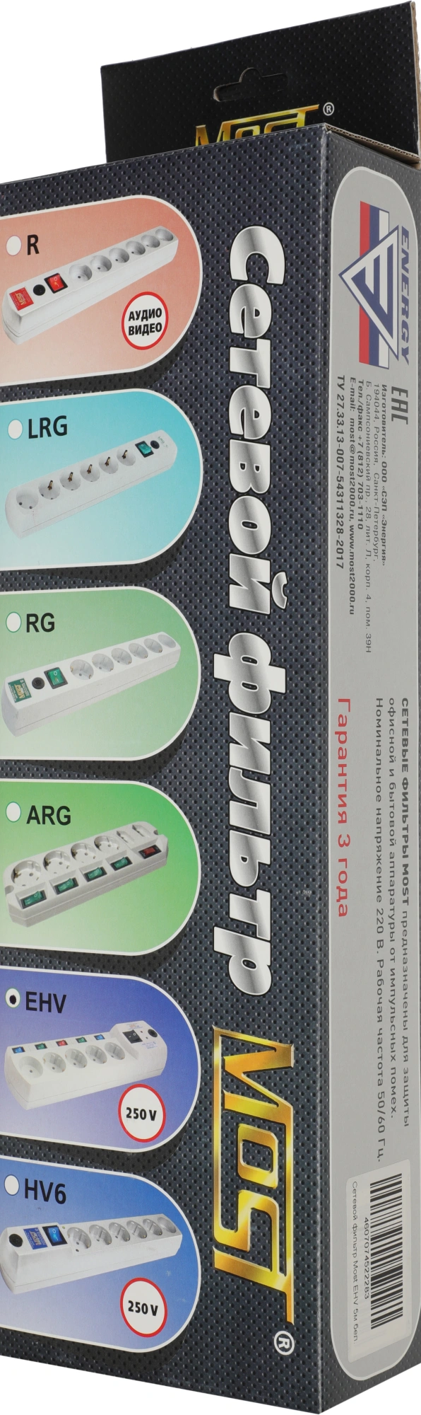 Сетевой фильтр Most EHV 5м (5 розеток) белый (коробка) МОSТ ЕНV- 5М БЕЛ.