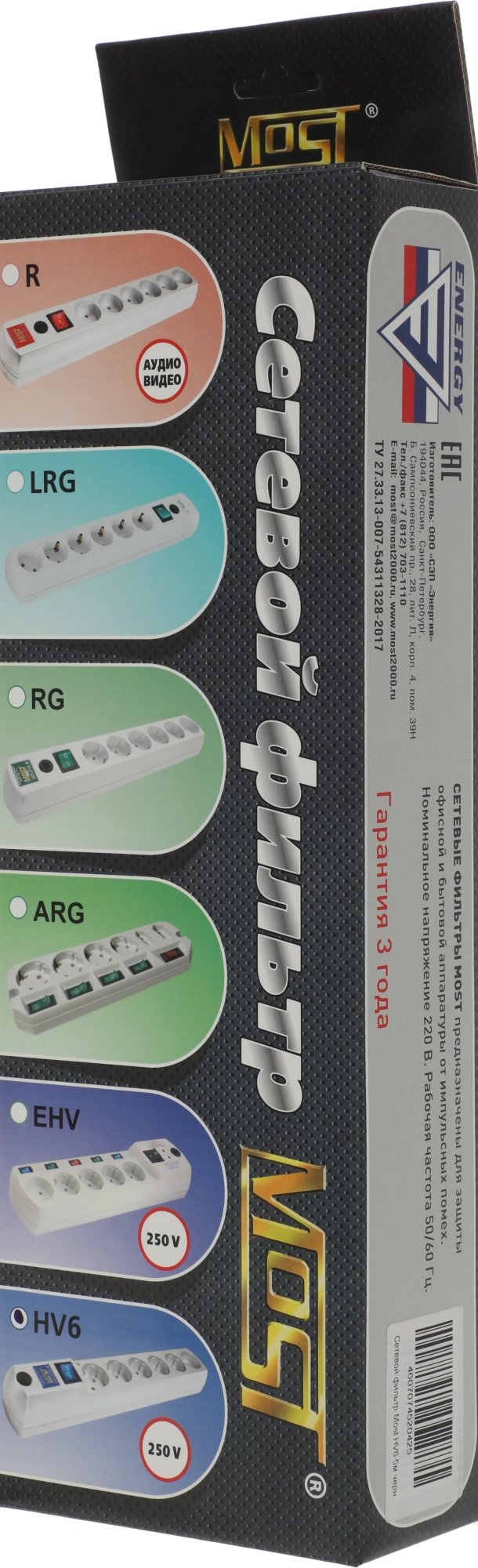 Сетевой фильтр Most HV6 5м (6 розеток) черный (коробка) MOST HV6 5М ЧЕР