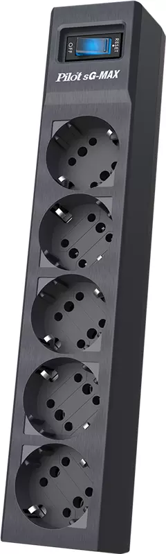 Сетевой фильтр Pilot sG-MAX, создан на базе Pilot S, с оригинальной конструкцией розеток, формата Gadget Parking. Это позволяет подключить к изделию с 5-ю розетками до 10 различных потребителей. Сетевой фильтр Pilot sG-MAX, обеспечивает необходимые функции защиты бытовой и офисной техники от импульсных помех, возникающих в электросети. Сетевой фильтр Pilot sG-MAX позволяет подключать нагрузку 3,3 кВт, и снабжен защитой от импульсных помех и грозового разряда, имеет защиту от перегрузки, тока короткого замыкания и критического повышения температуры внутри корпуса. Корпус выполнен из прочного трудногорючего пластика, контактные шины выполнены из специального гибкого металла, обеспечивающего плотный контакт с вилкой. Сетевой фильтр Pilot sG-MAX отвечает всем требованиям российских стандартов в области электромагнитной совместимости и безопасности и может использоваться для подключения и защиты любой техники