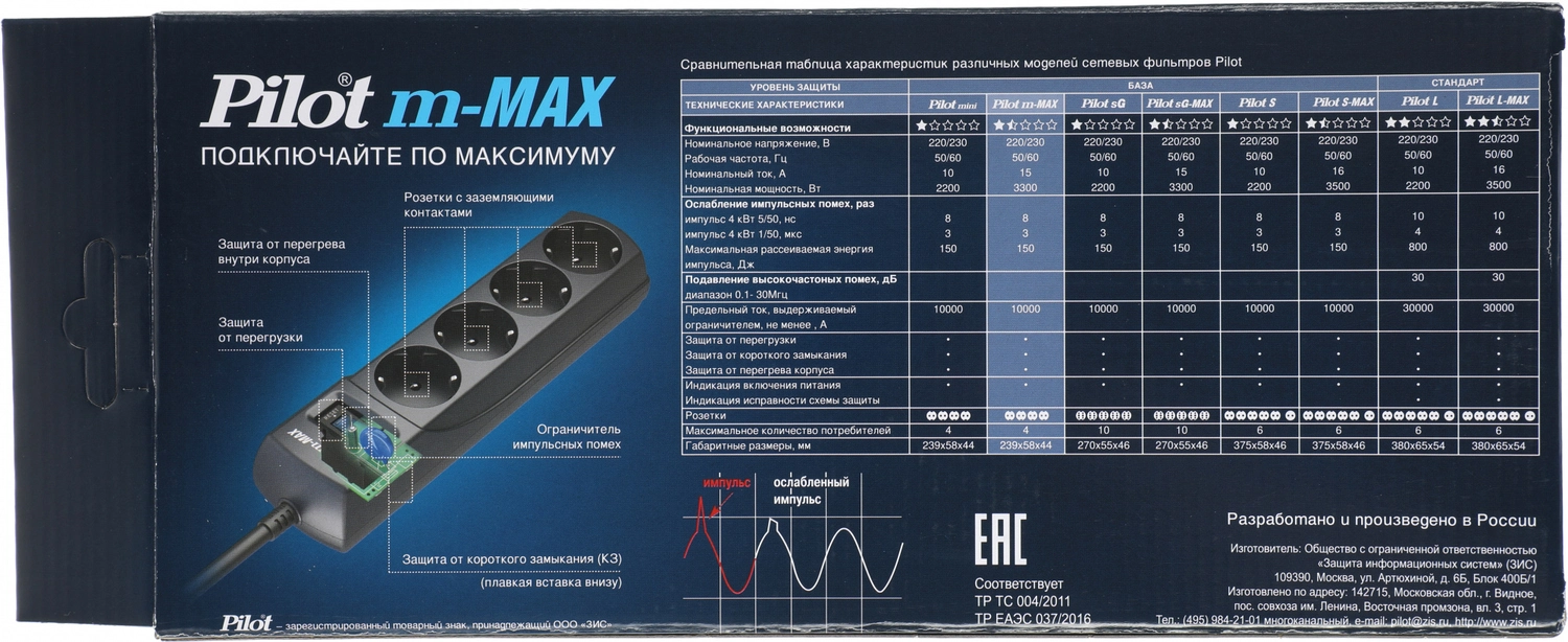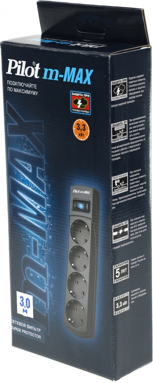 Сетевой фильтр Pilot m-MAX 3м (4 розетки) серый (коробка) 144