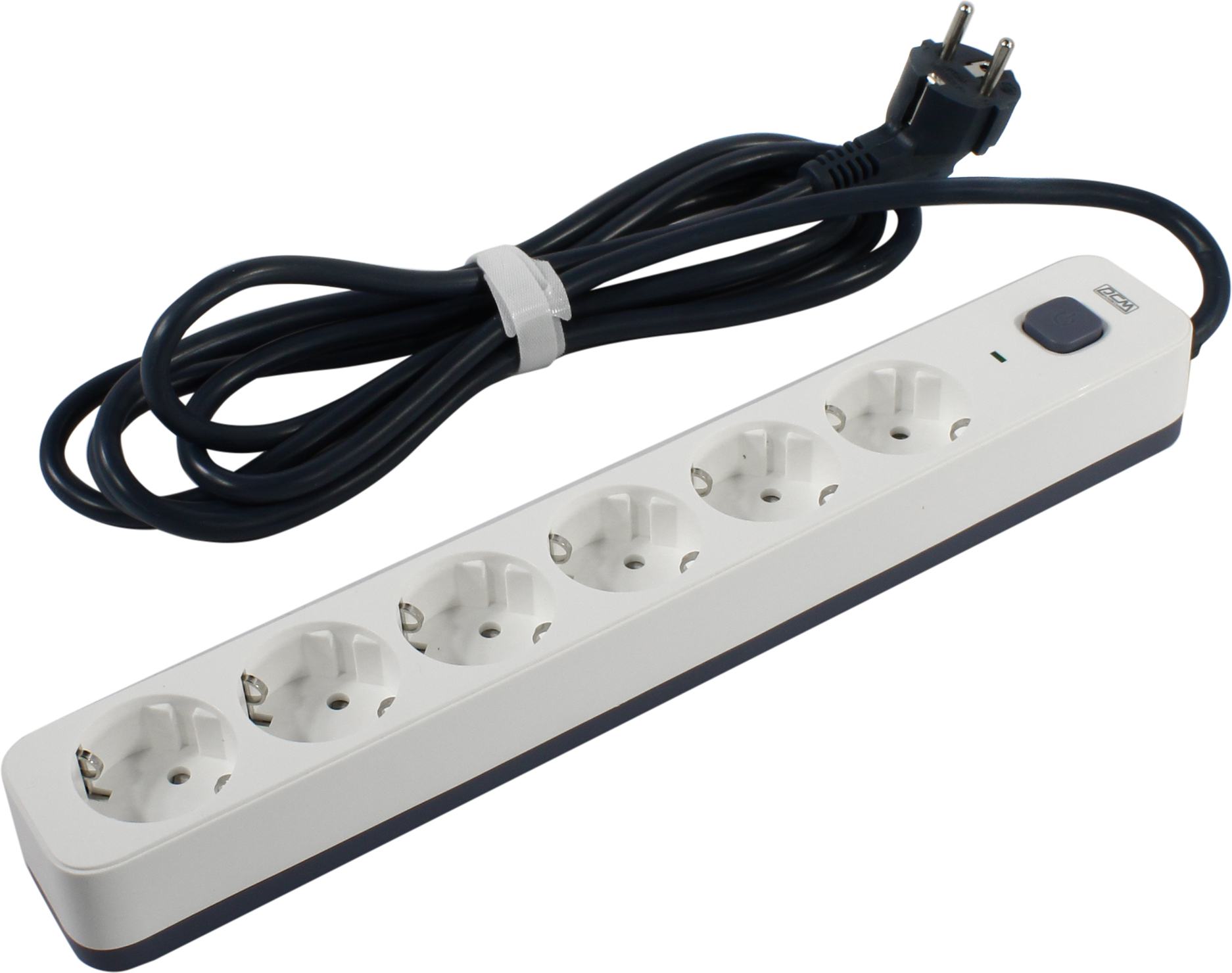 Сетевой фильтр Powercom SP-06W 3,0М 3м (6 розеток) белый/серый (коробка)