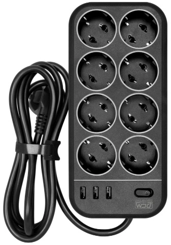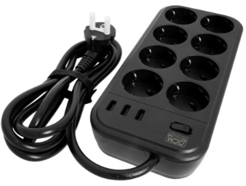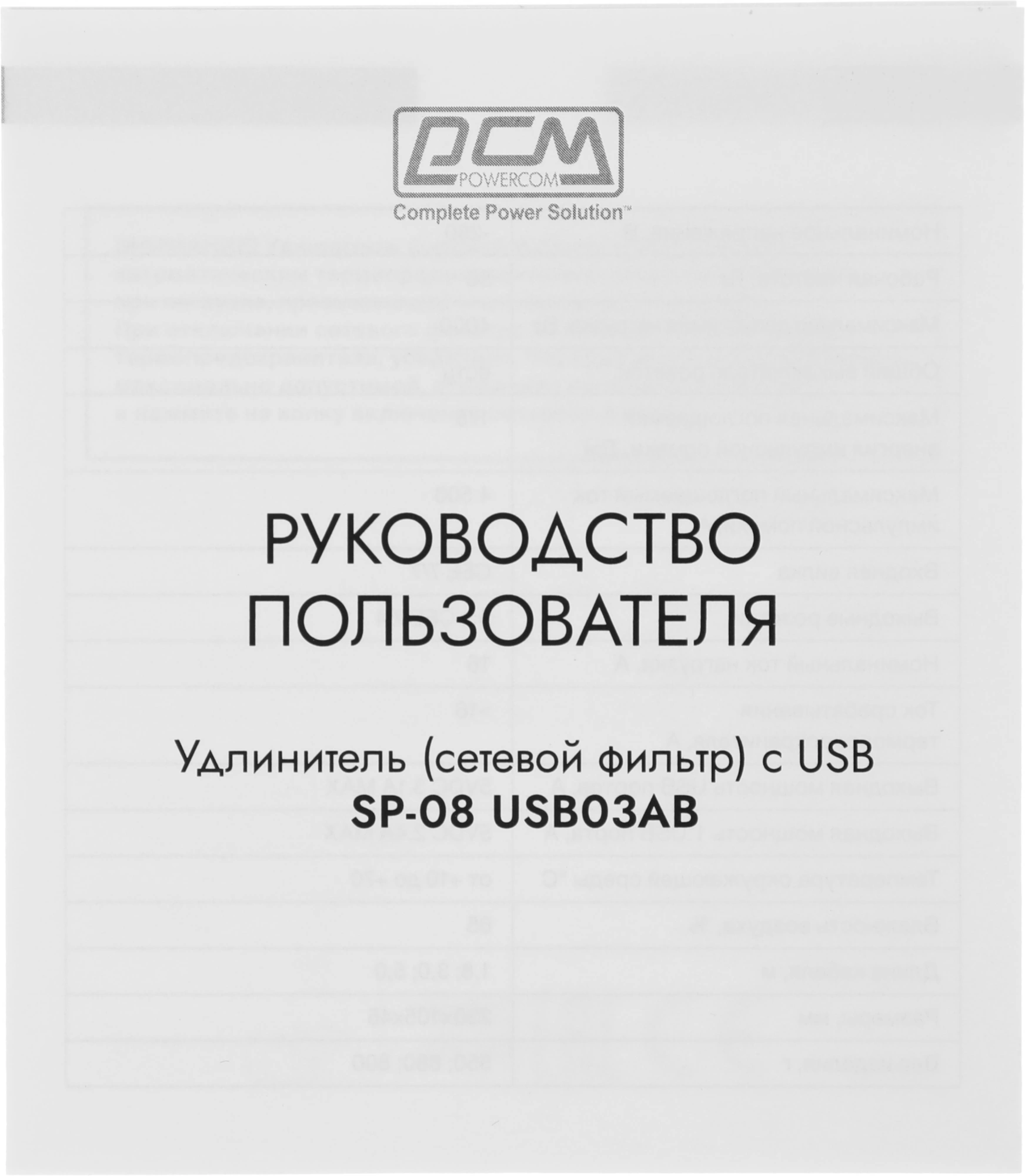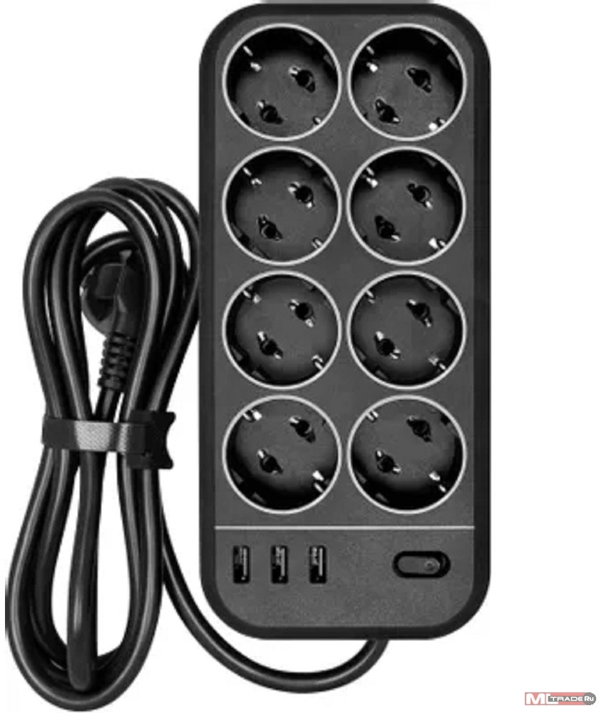 Сетевой фильтр Powercom SP-08 USB03AB 3,0М 3м (8 розеток) черный (коробка)