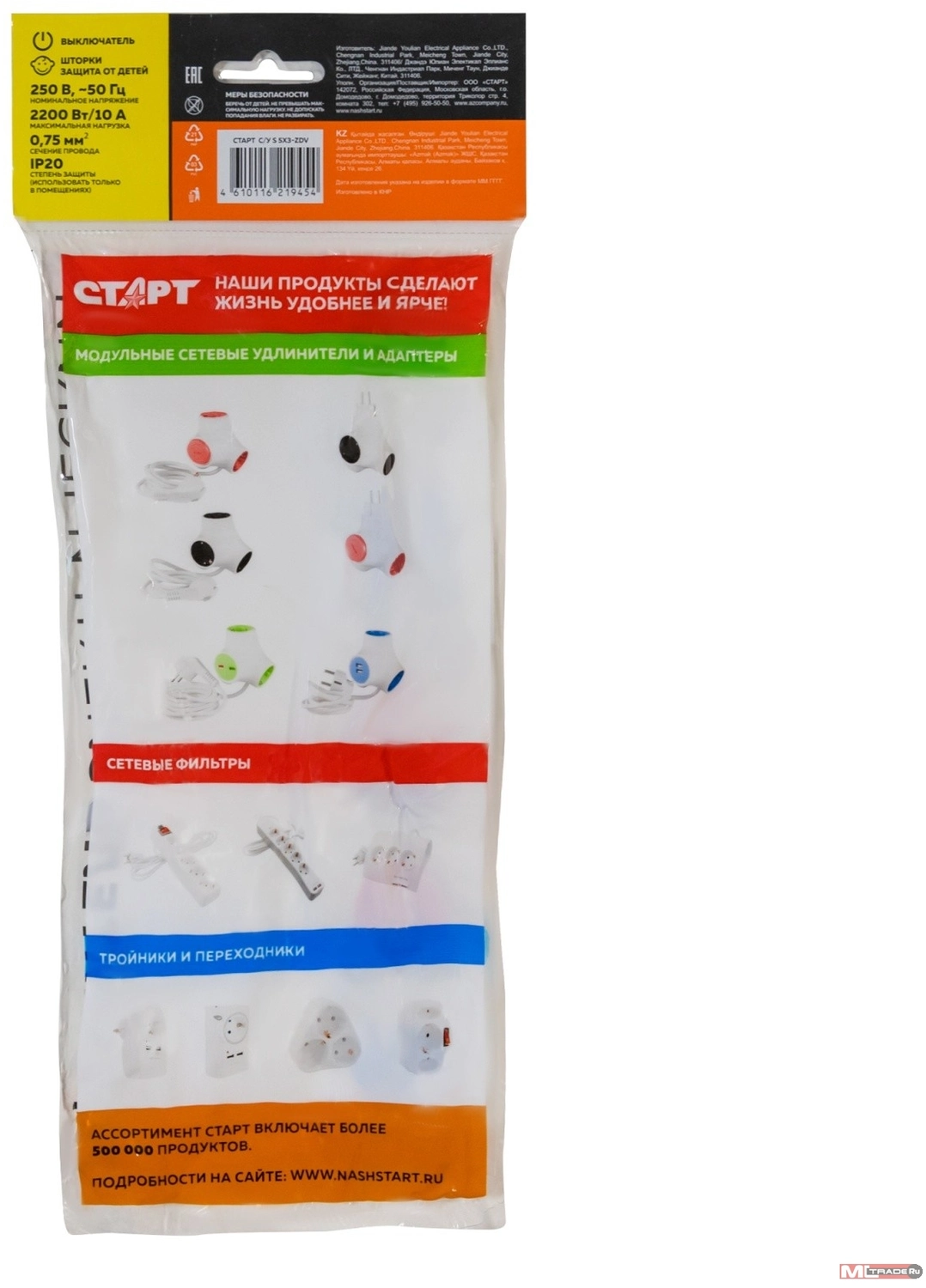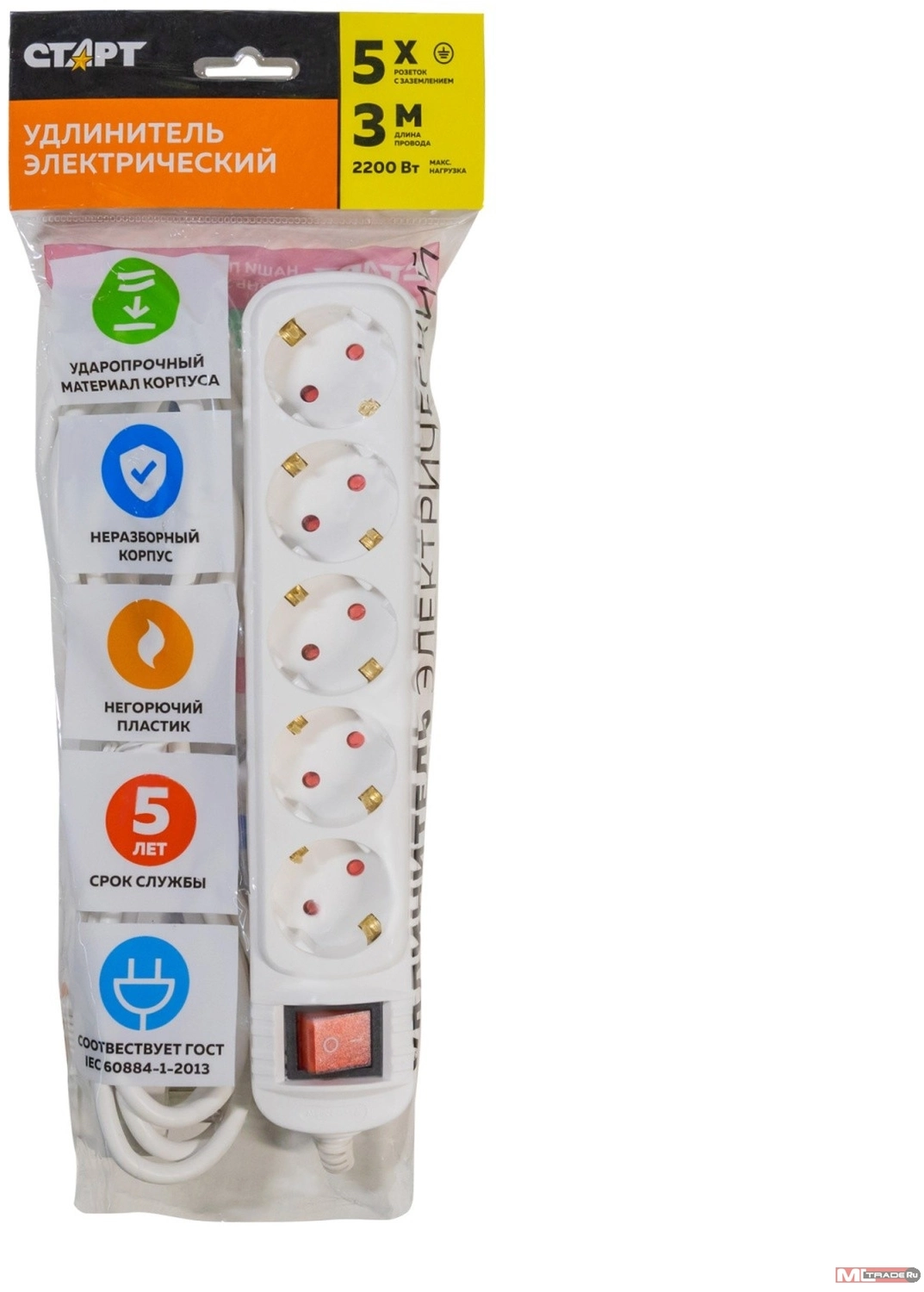 Сетевой удлинитель СТАРТ С/ У S 5x3-ZDV, белый, серия CLASSIC [4610116219454]