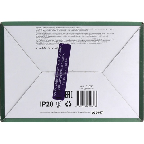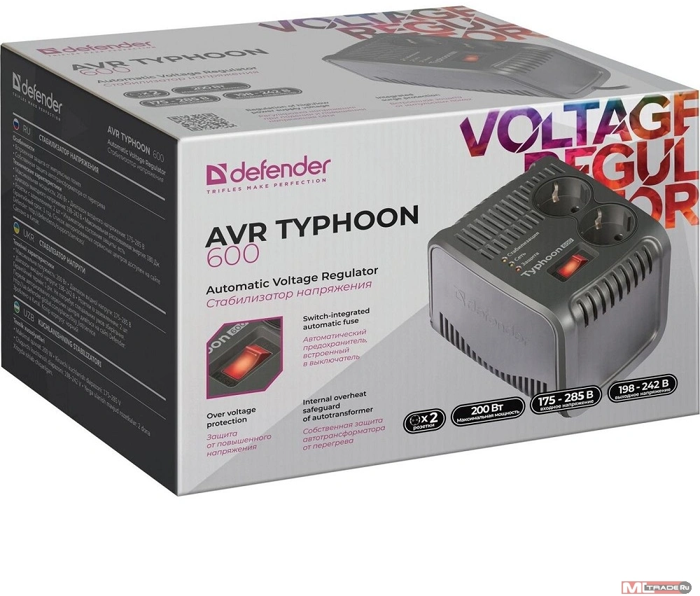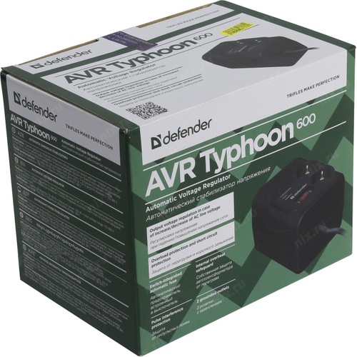 Сетевые фильтры Defender Акция!!! Стабилизатор напряжения AVR Typhoon 600 200 Вт, 2 розетки [99032]