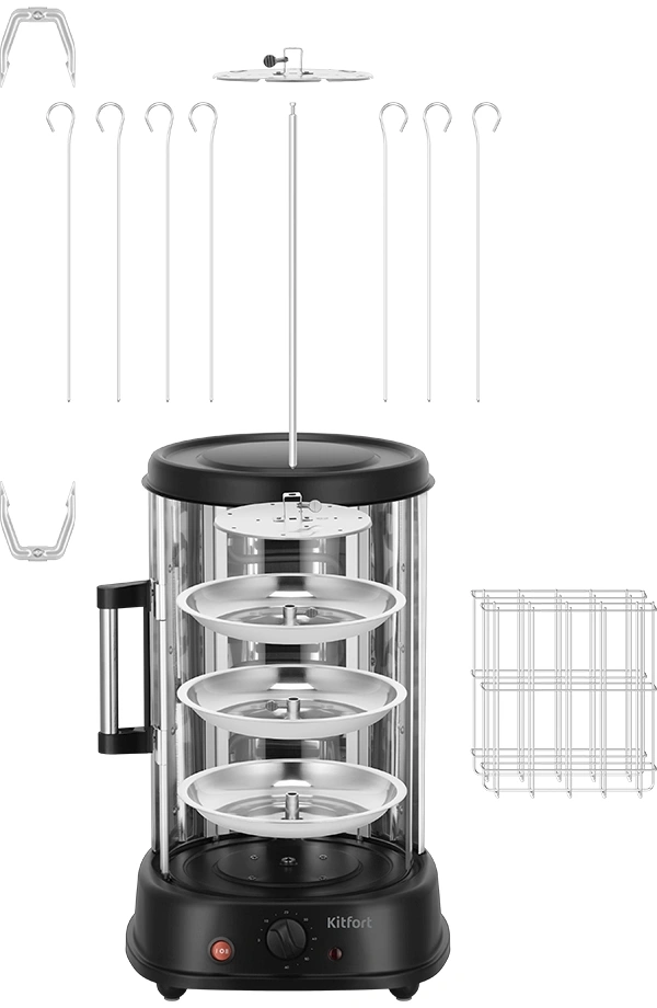 Шашлычница электрическая Kitfort КТ-1411 1500Вт серебристый/ черный