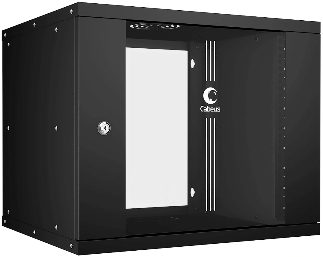 Шкаф коммутационный Cabeus (WSC-05D-9U55/ 45-BK) настенный 9U 550x450мм пер.дв.стекл 30кг черный 340мм 14кг 220град. 450мм IP20 сталь