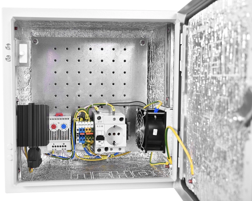 Шкаф монтажный ЦМО Эконом (ШТВ-НЭ-5.5.25-3ВВА-Т1) настенный 500x250мм пер.дв.стал.лист задн.дв.спл.стал.лист несъемн.бок.пан. серый 220мм 18кг 500мм IP54 уличный всепогодный с вентилятором с нагревателем с силовыми розетками укомплектованный 100Вт