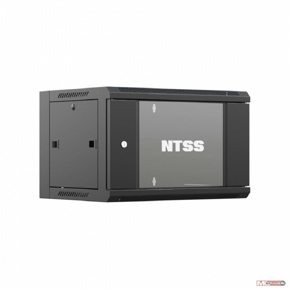 Шкаф телекоммуникационный, стойка NTSS Шкаф настенный телекоммуникационный NTSS W 9U 600х600х500мм, 2 профиля 19, дверь стеклянная, боковые стенки съемные, задняя стенка, разобранный, черный RAL 9005 NTSS-W9U6060GS-BL