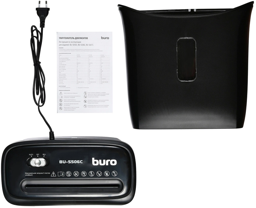 Шредер Buro Home BU-S506C черный (секр.P-4) фрагменты 5лист. 12лтр. пл.карты