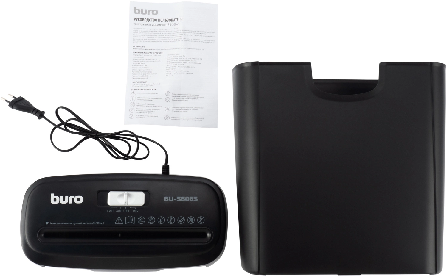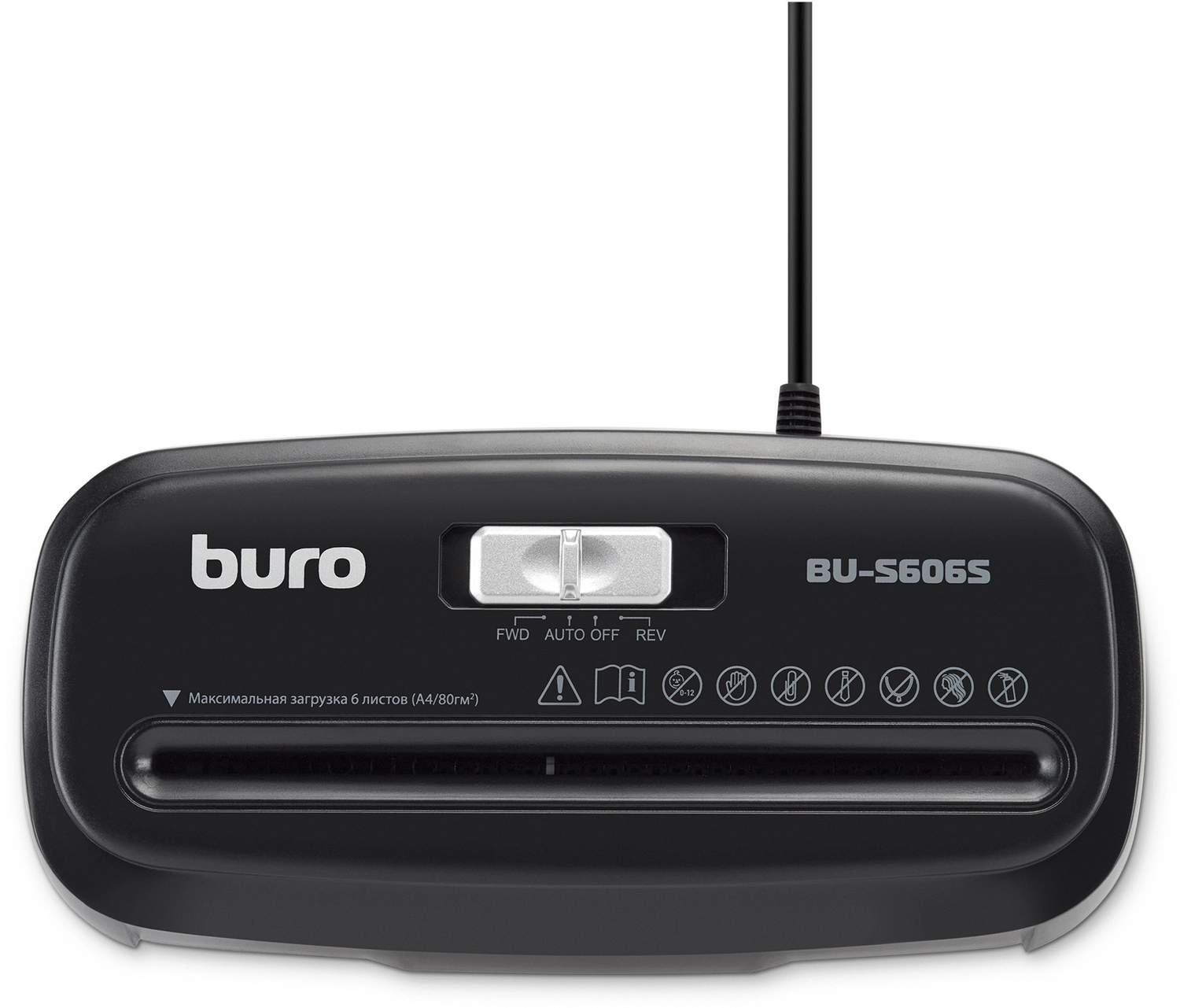 Шредер Buro Home BU-S606S черный (секр.Р-2) ленты 6лист. 11лтр. пл.карты