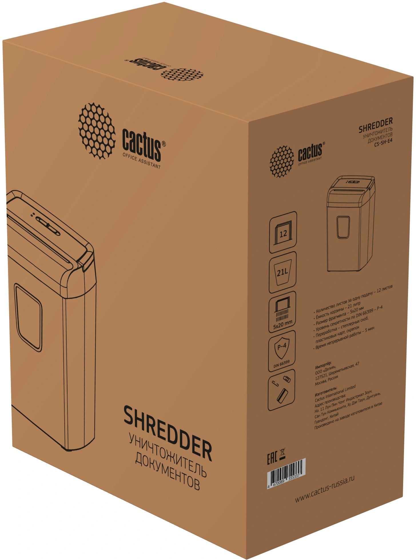Шредер Cactus CS-SH-E4 (секр.P-4) фрагменты 12лист. 21лтр. скрепки скобы пл.карты