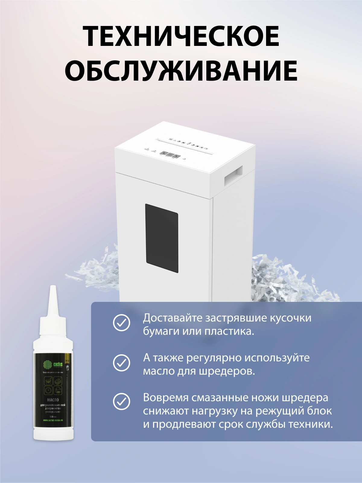 Шредер Cactus CS-SH-K9 белый (секр.P-4) фрагменты 15лист. 48лтр. скрепки скобы пл.карты