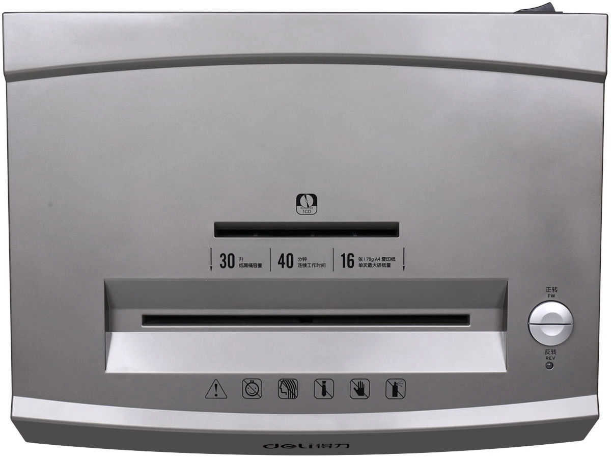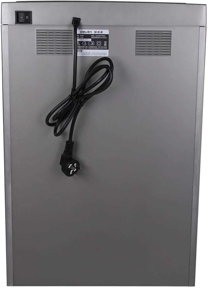 Шредер Deli 9906 серый с автоподачей (секр.P-5) фрагменты 16лист. 30лтр. скрепки скобы пл.карты CD
