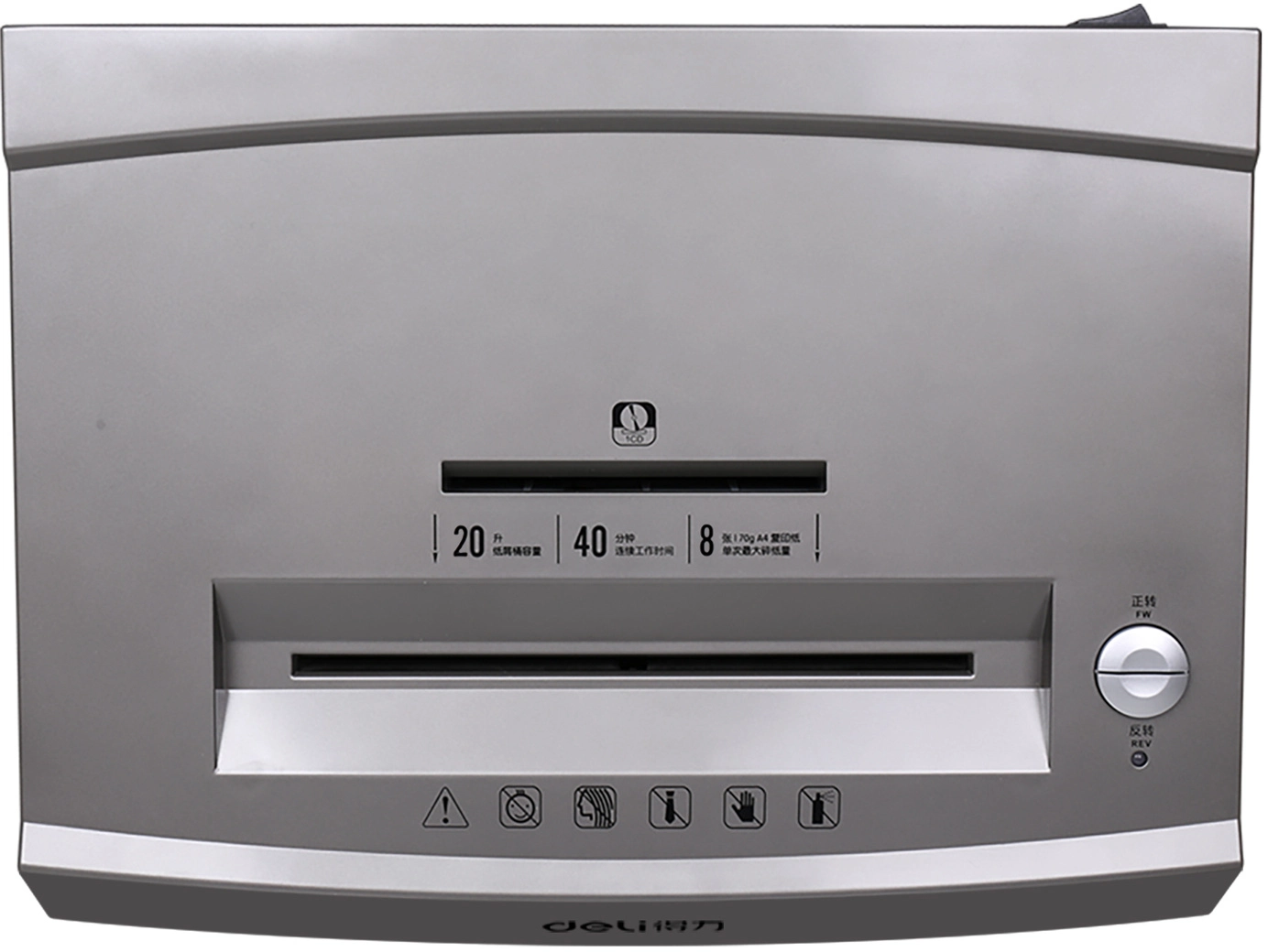 Шредер Deli 9907 серебристый с автоподачей (секр.P-4) фрагменты 8лист. 20лтр. скрепки скобы пл.карты CD