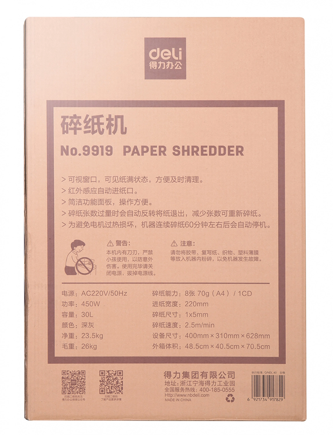 Шредер Deli 9919 серый с автоподачей (секр.P-7) фрагменты 8лист. 30лтр. скрепки скобы пл.карты CD