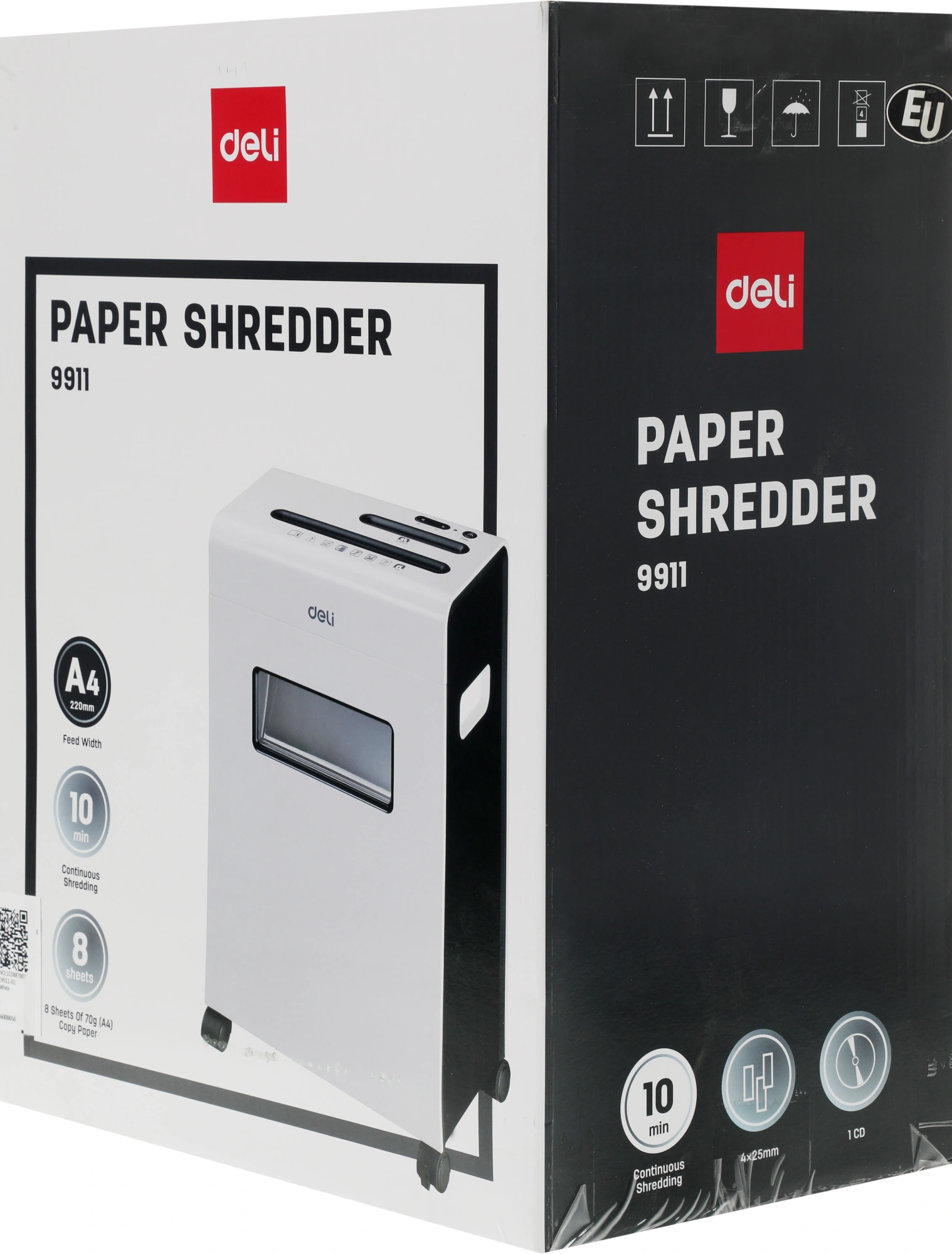 Шредер Deli E9911-EU белый (секр.P-4) фрагменты 8лист. 16лтр. скрепки скобы пл.карты CD