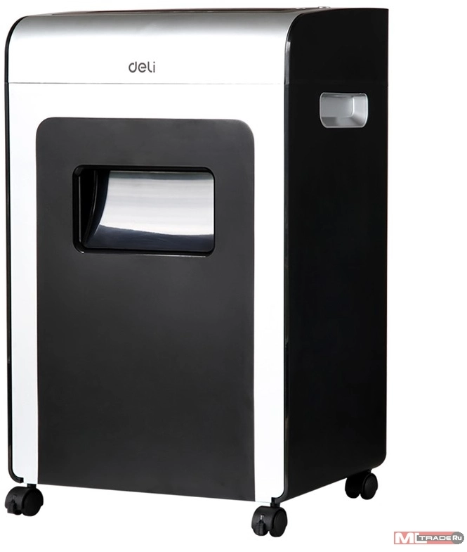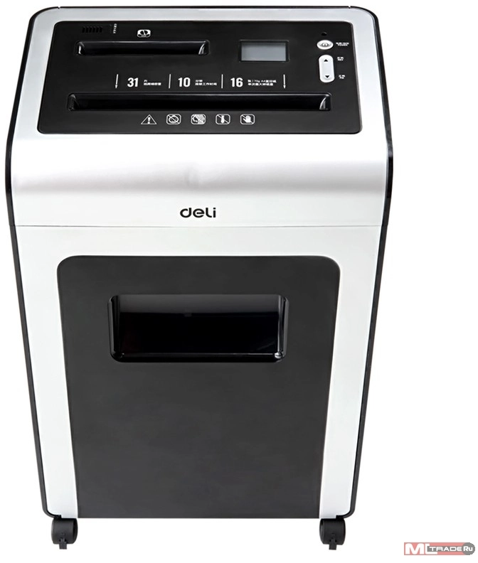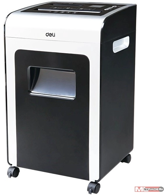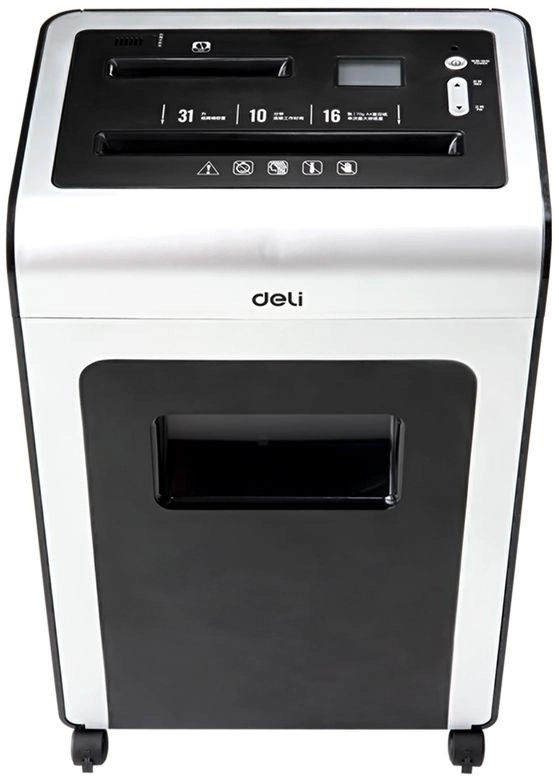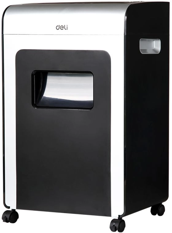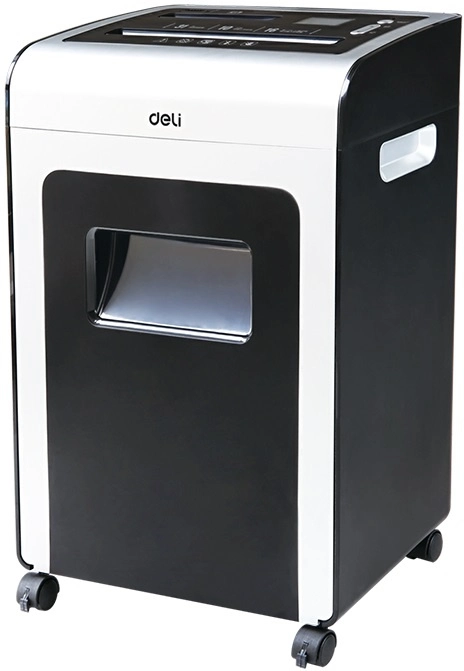 Шредер Deli E9917-EU черный/белый с автоподачей (секр.P-4) фрагменты 16лист. 31лтр. скрепки скобы пл.карты CD