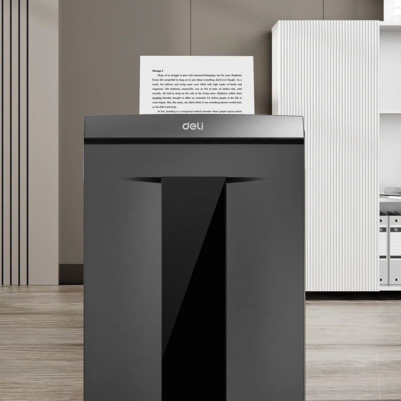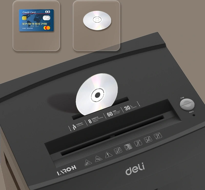 Шредер Deli Laro-H ET098 серый (секр.P-7) фрагменты 8лист. 30лтр. скрепки скобы пл.карты CD