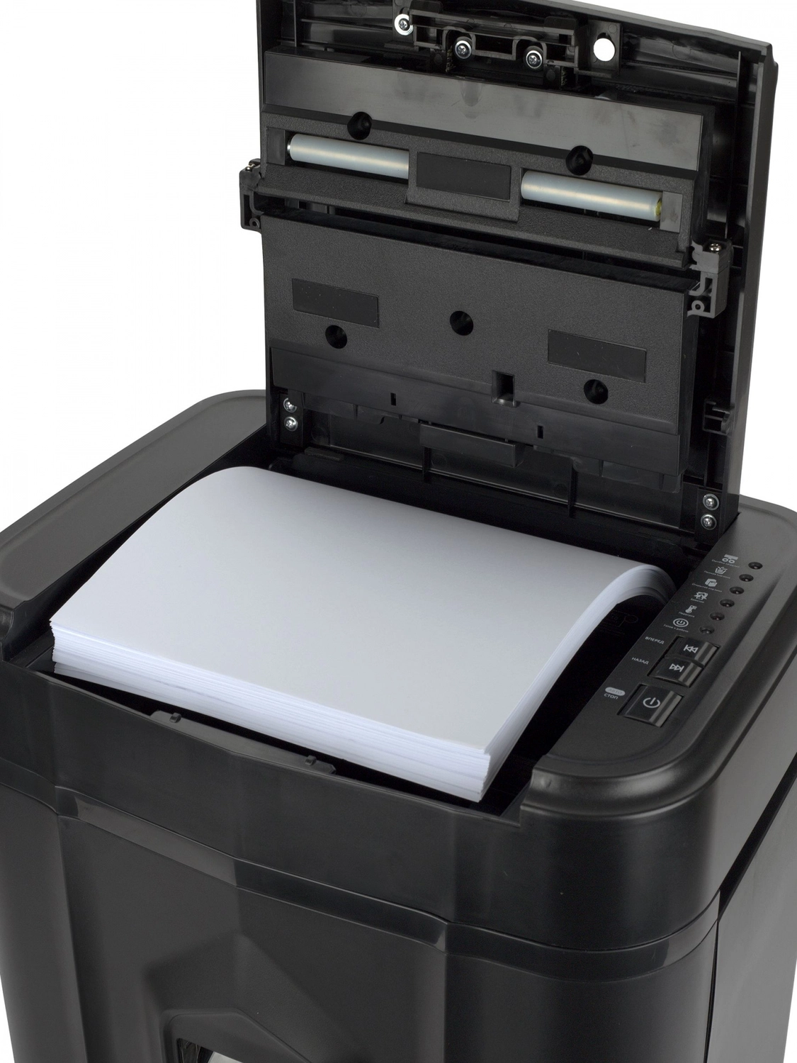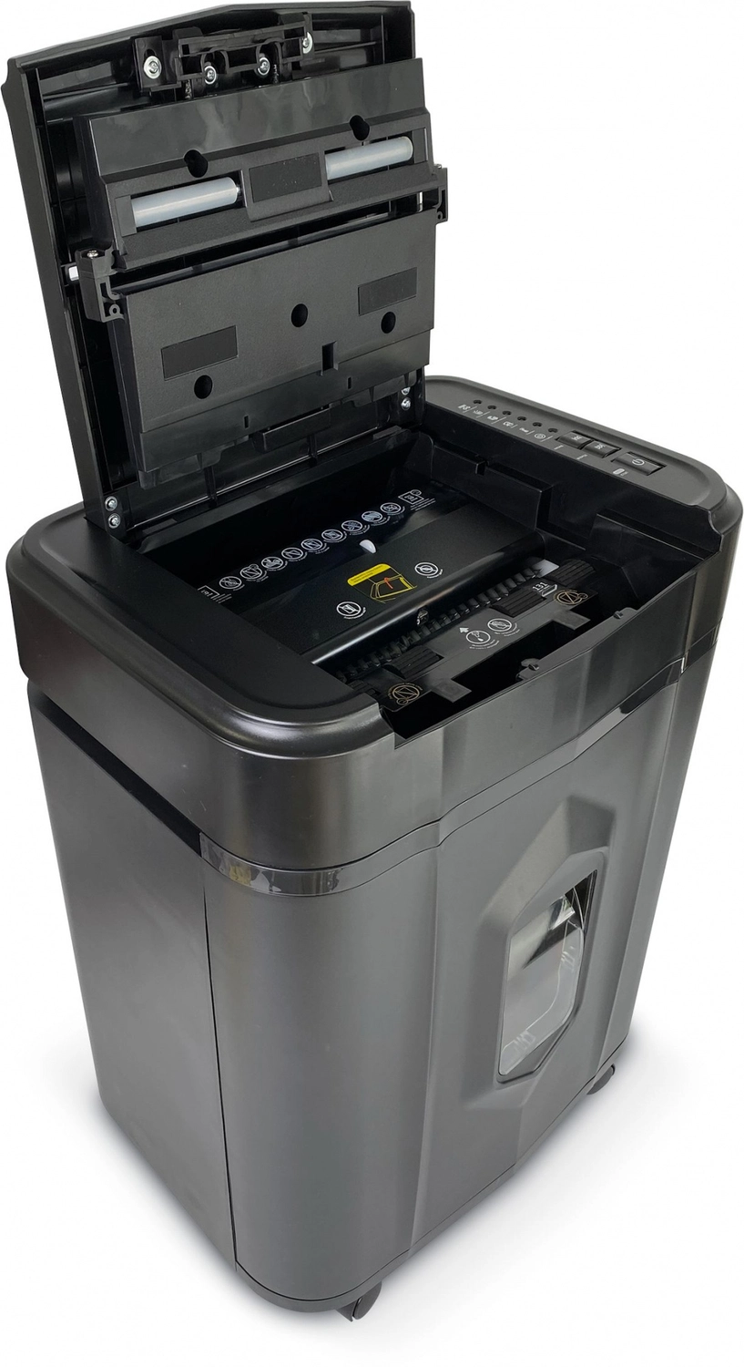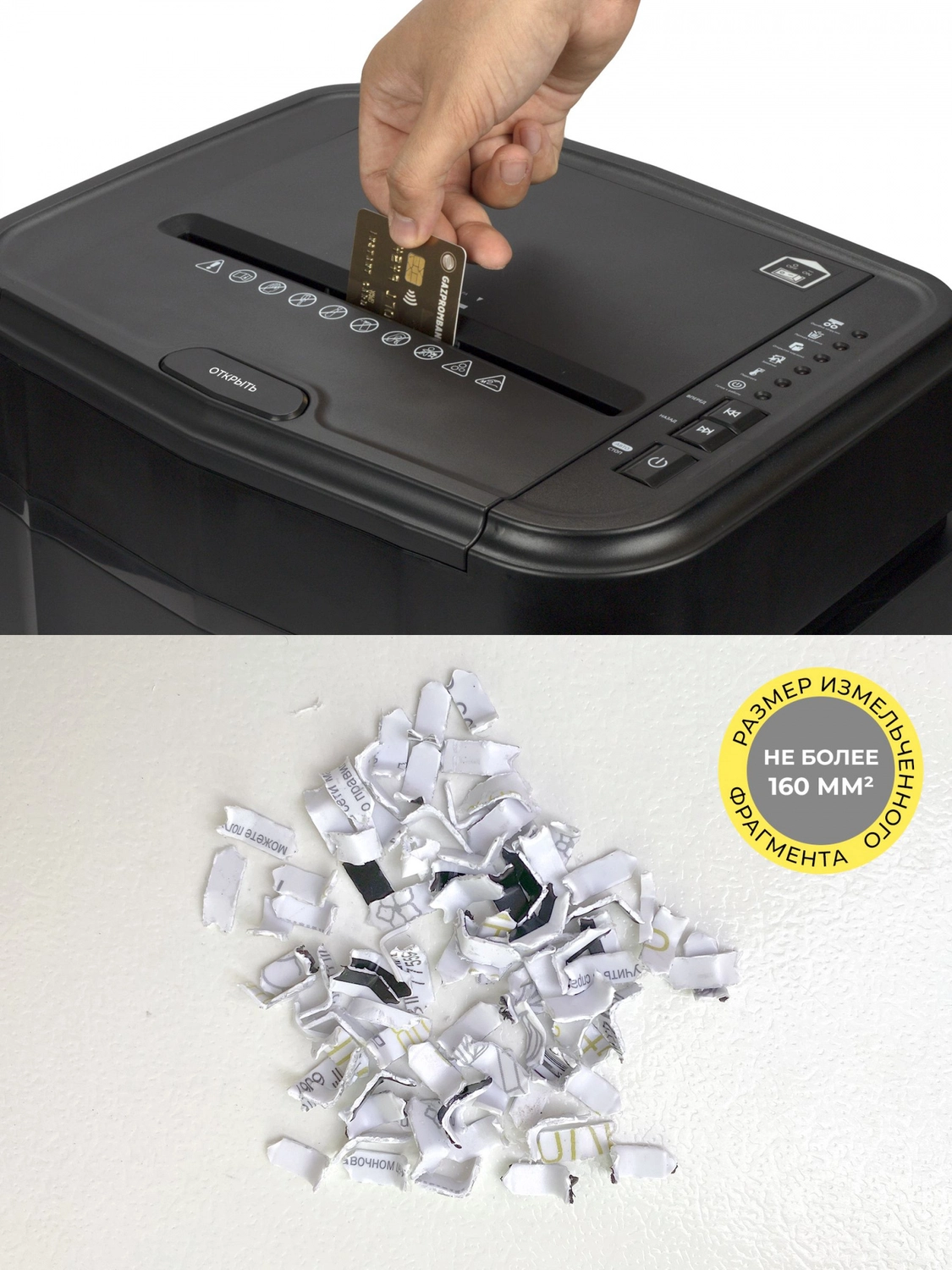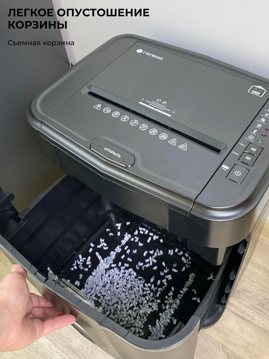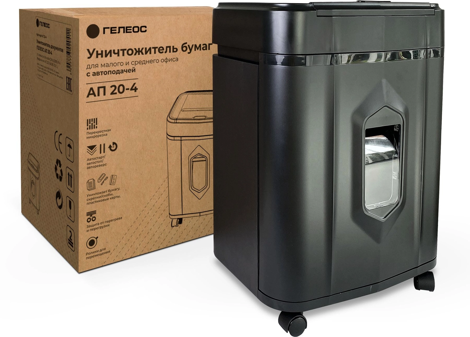 Шредер Heleos АП20-4 черный с автоподачей (секр.P-4) фрагменты 131лист. 20лтр. скрепки скобы пл.карты