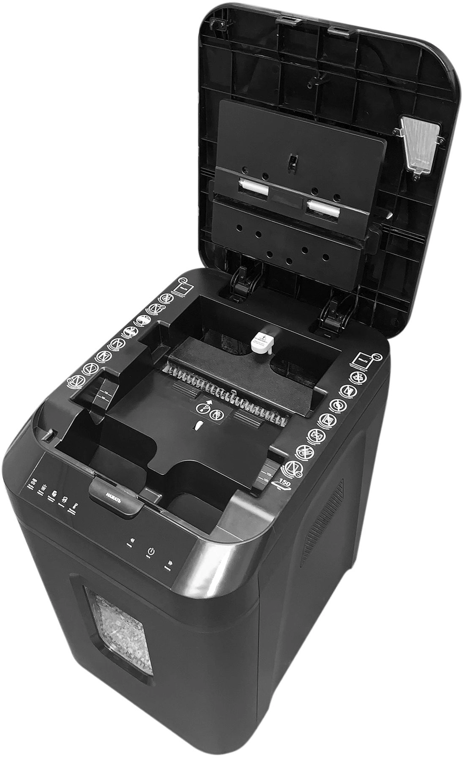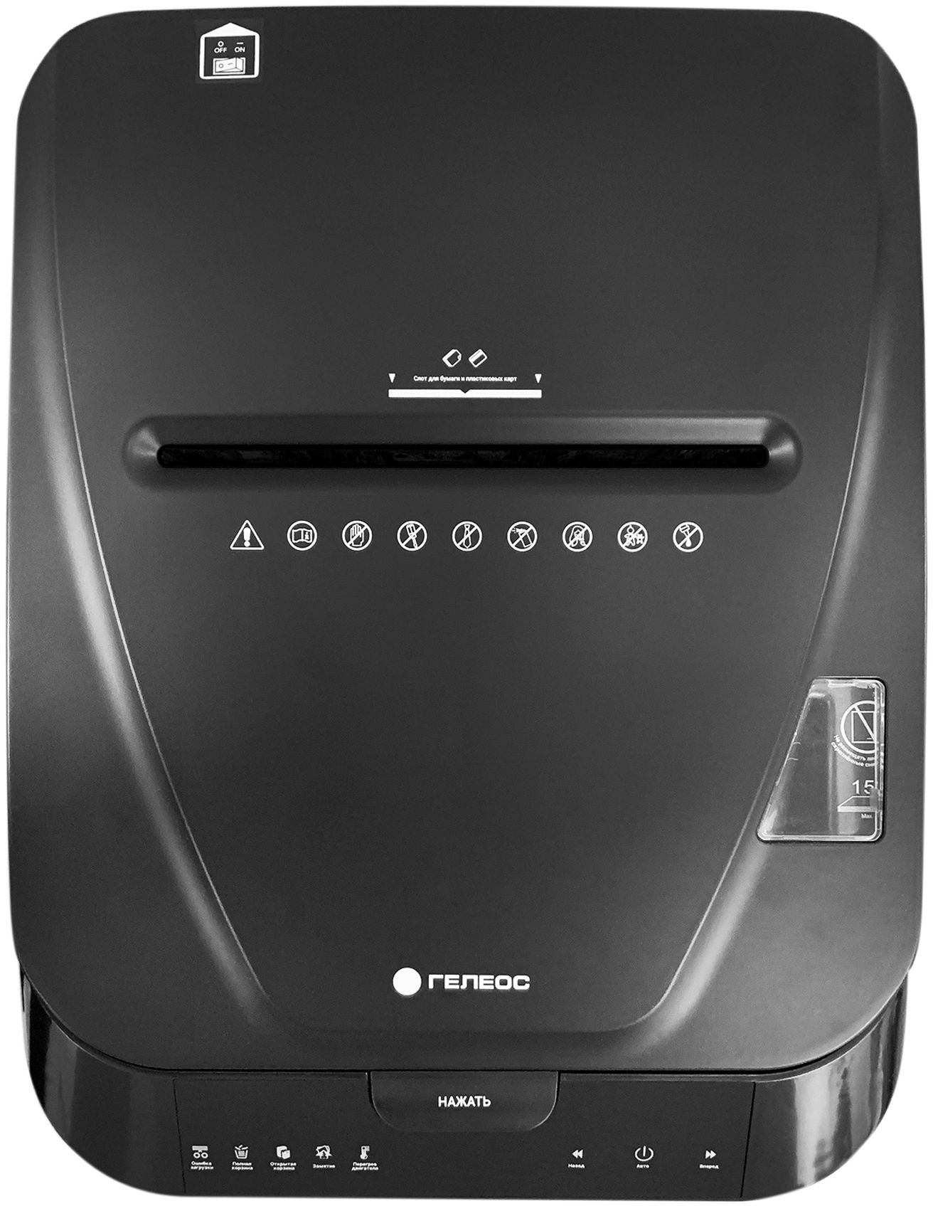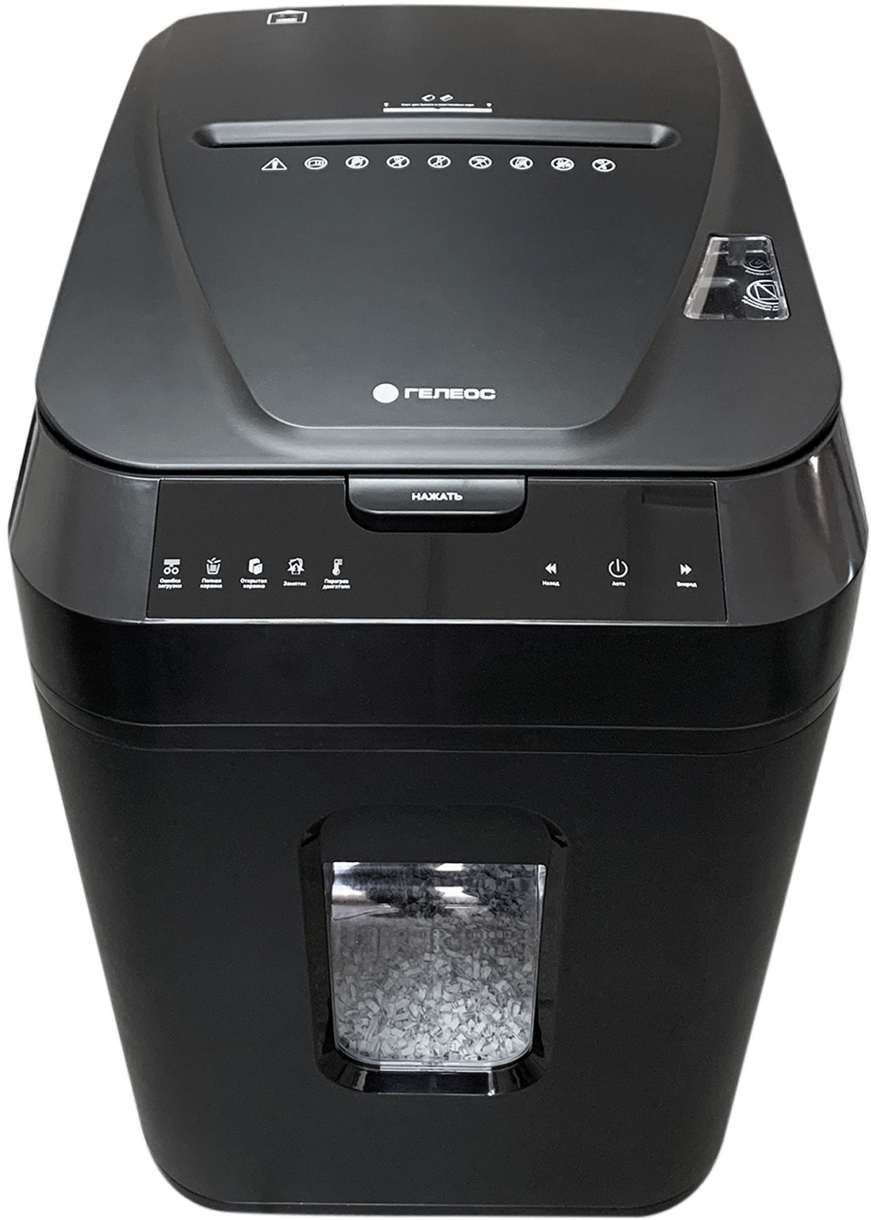 Шредер Heleos АП40 черный с автоподачей (секр.P-4) фрагменты 150лист. 37лтр. скрепки скобы пл.карты