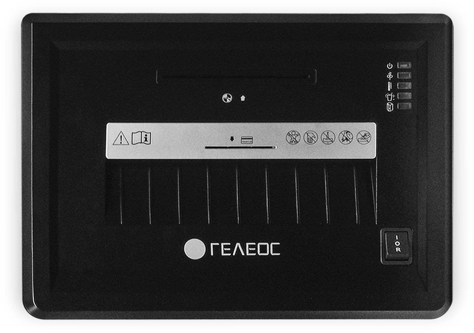 Шредер Heleos УМ26-4 белый/черный (секр.P-4) фрагменты 16лист. 26лтр. скрепки скобы пл.карты CD
