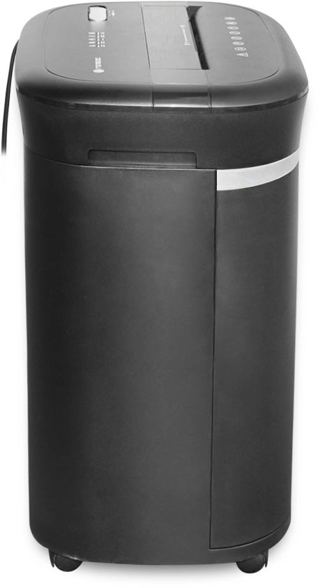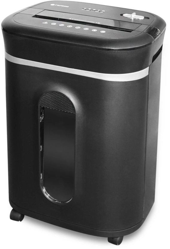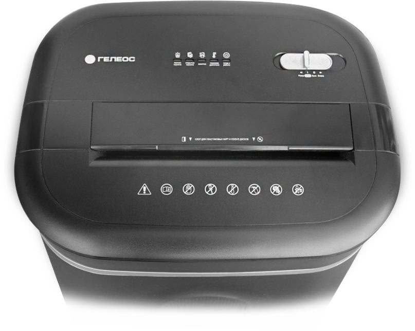 Шредер Heleos УМ28-4 черный/серебристый (секр.P-4) фрагменты 17лист. 28лтр. скрепки скобы пл.карты CD