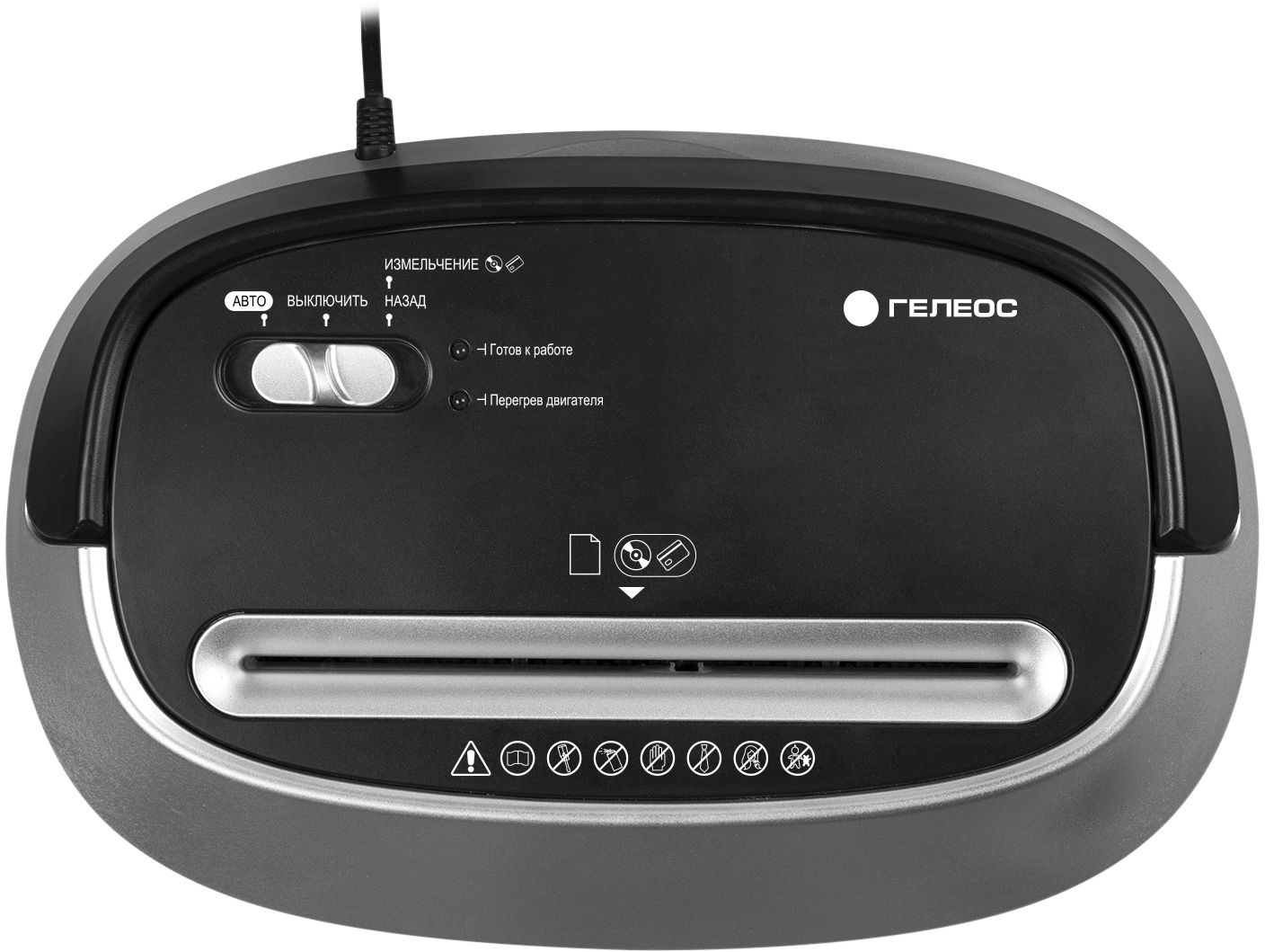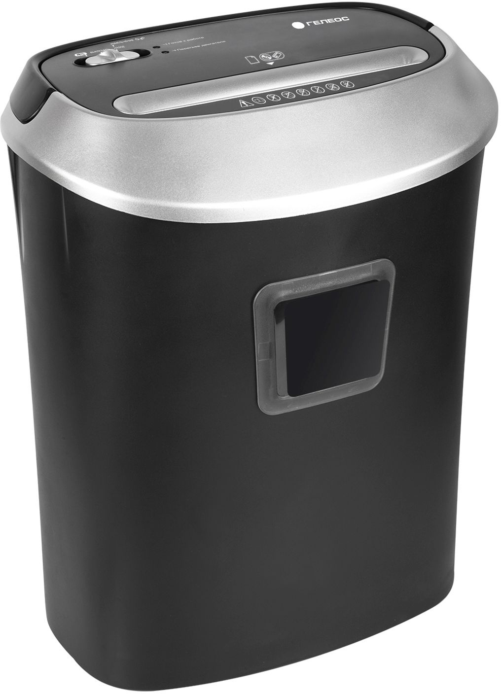 Шредер Heleos УМ30-4 черный/серебристый (секр.P-4) фрагменты 14лист. 30лтр. скрепки скобы пл.карты CD
