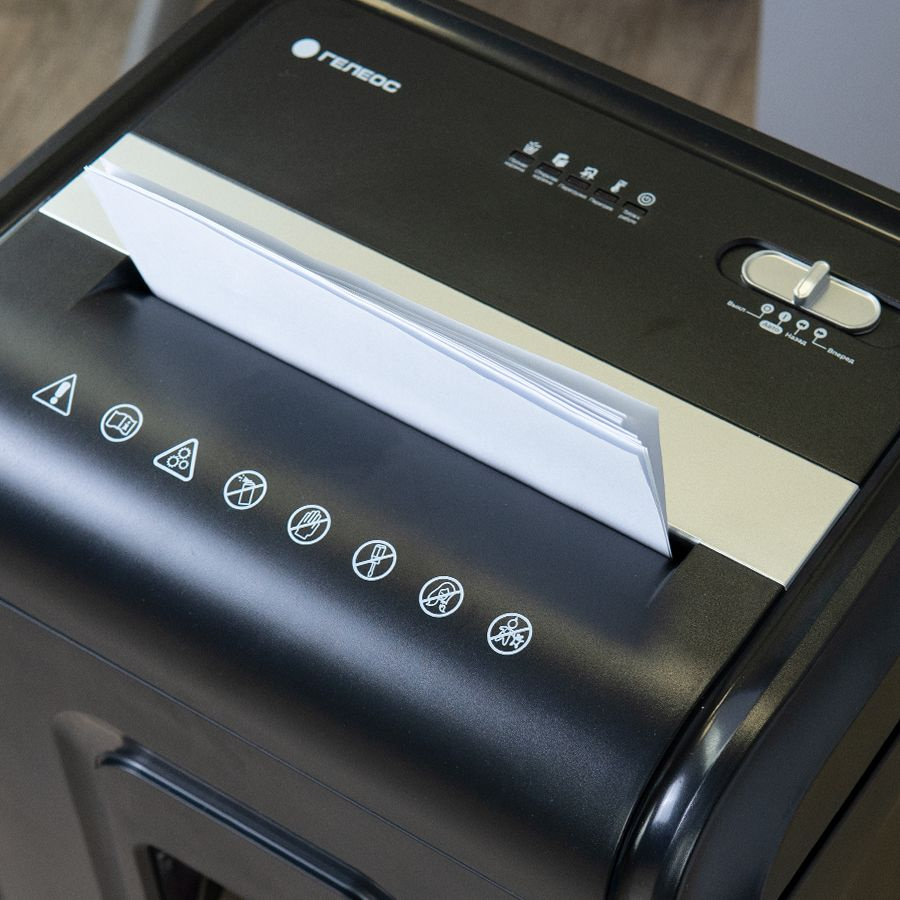 Шредер Heleos УМ32-4 черный/серебристый (секр.P-4) фрагменты 28лист. 32лтр. скрепки скобы пл.карты CD