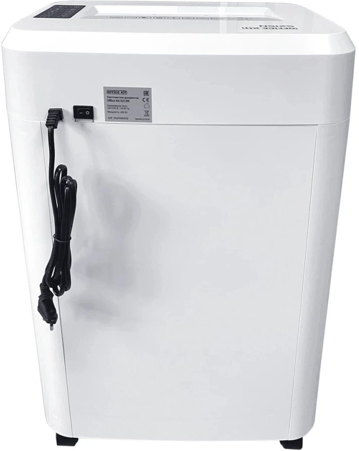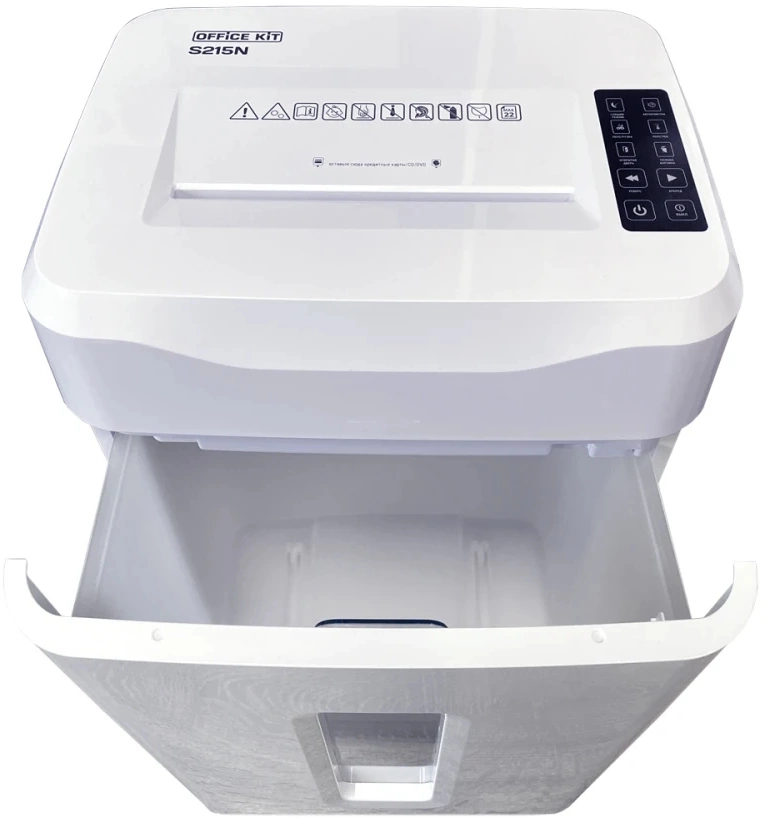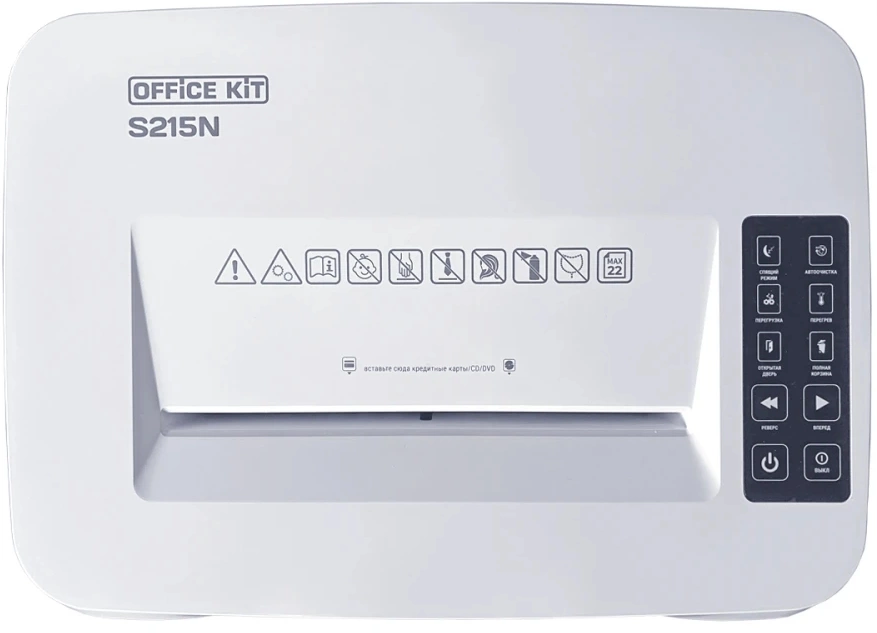 Шредер Office Kit S215N 3,9x38 белый (секр.P-4) фрагменты 22лист. 35лтр. скрепки скобы пл.карты CD OK0444S215N