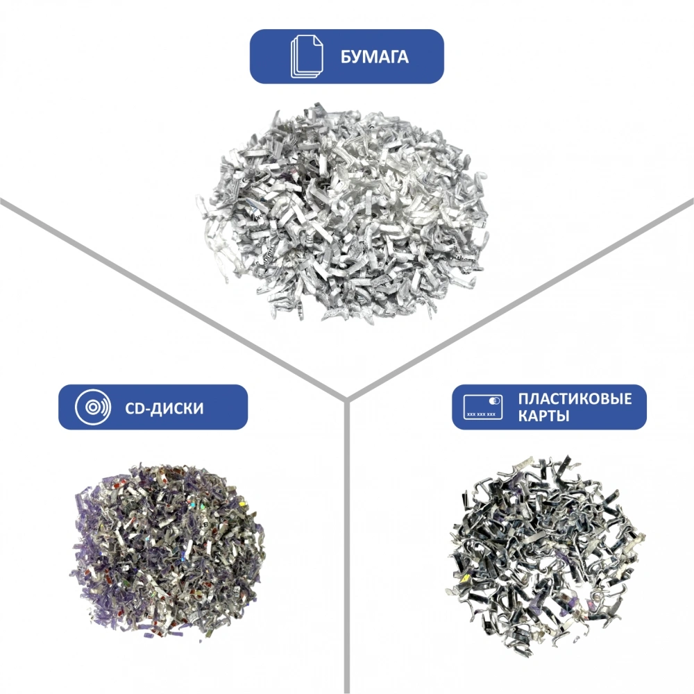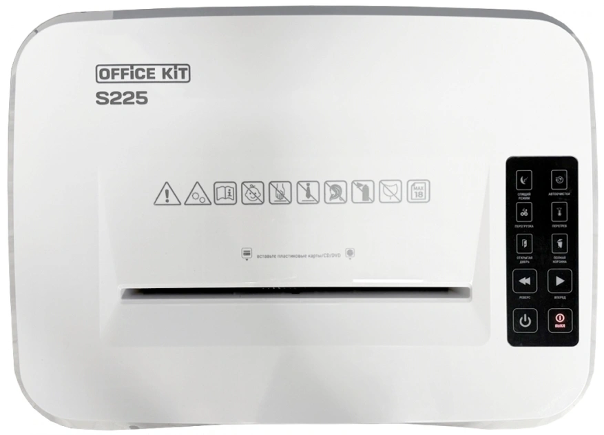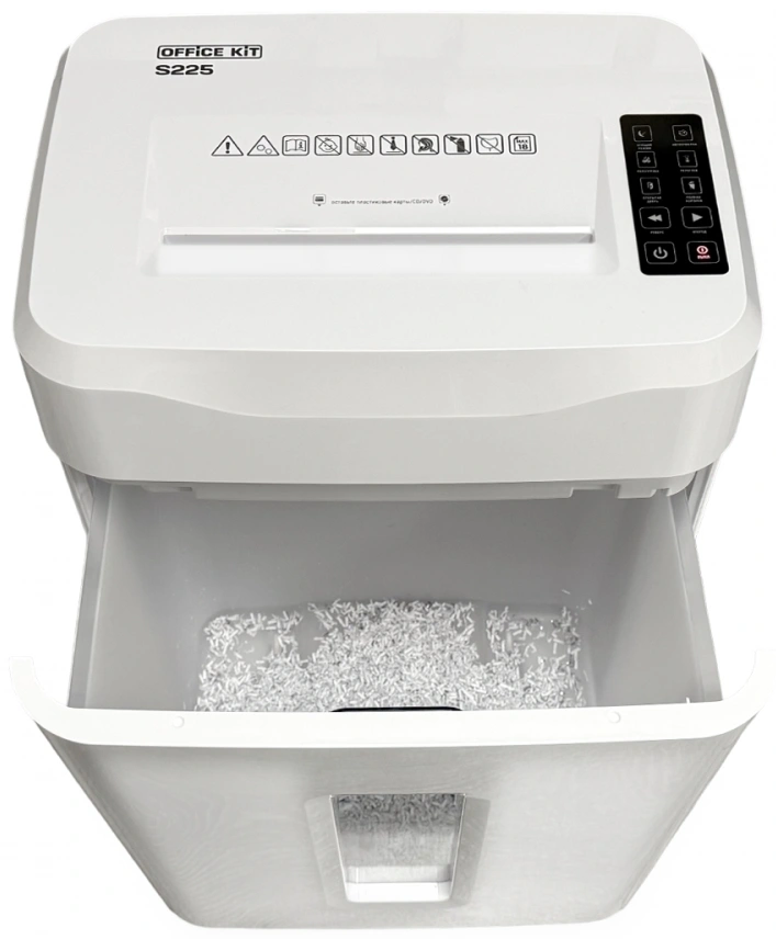 Шредер Office Kit S225 1,9х12 белый (секр.P-5) фрагменты 18лист. 35лтр. скобы пл.карты CD OK1912S225