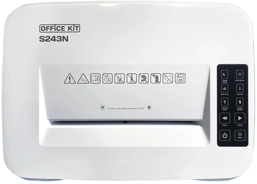 Шредер Office Kit S243N 3,9х38 белый (секр.P-4) фрагменты 35лист. 35лтр. скрепки скобы пл.карты CD OK3938S243N