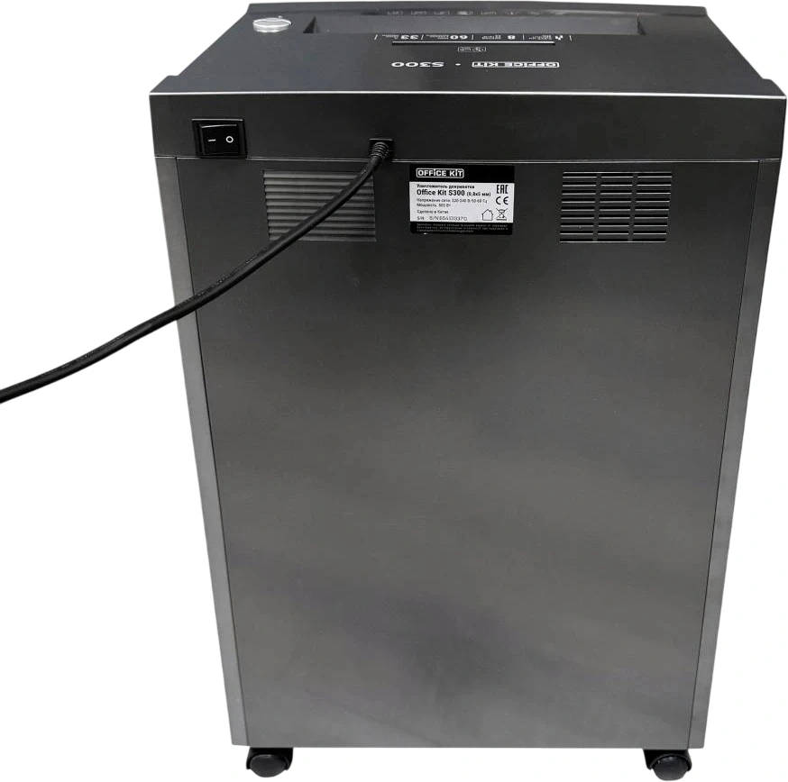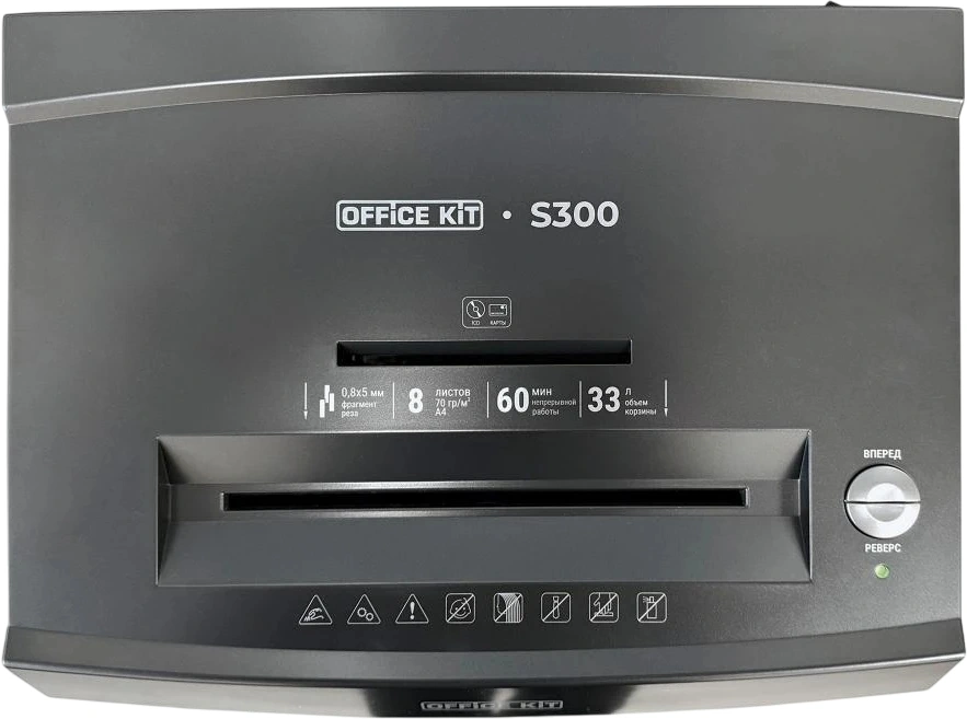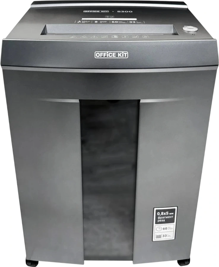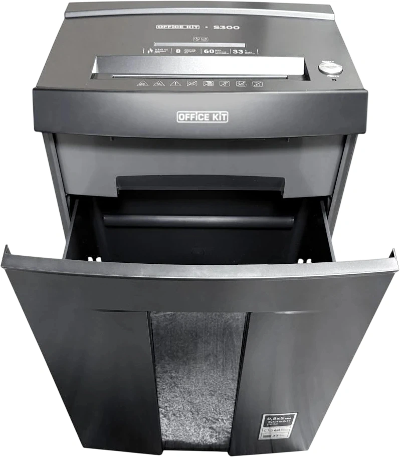 Шредер Office Kit S300 0,8x5 черный (секр.P-7) фрагменты 8лист. 33лтр. пл.карты CD OK0805S300
