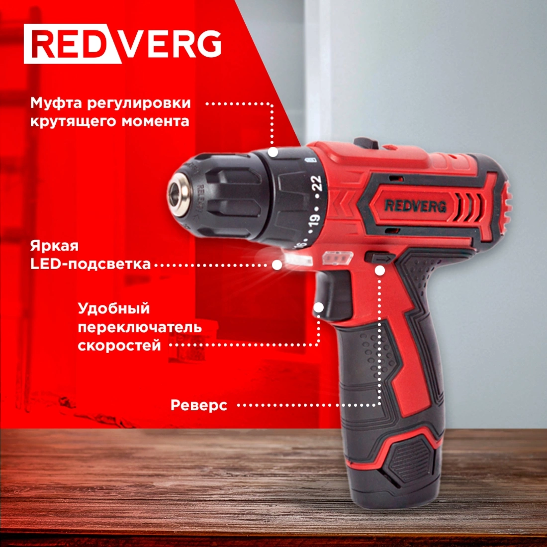 Шуруповерт RedVerg RD-SD10L/2Y аккум. патрон:быстрозажимной (кейс в комплекте) | НИКС Екатеринбург