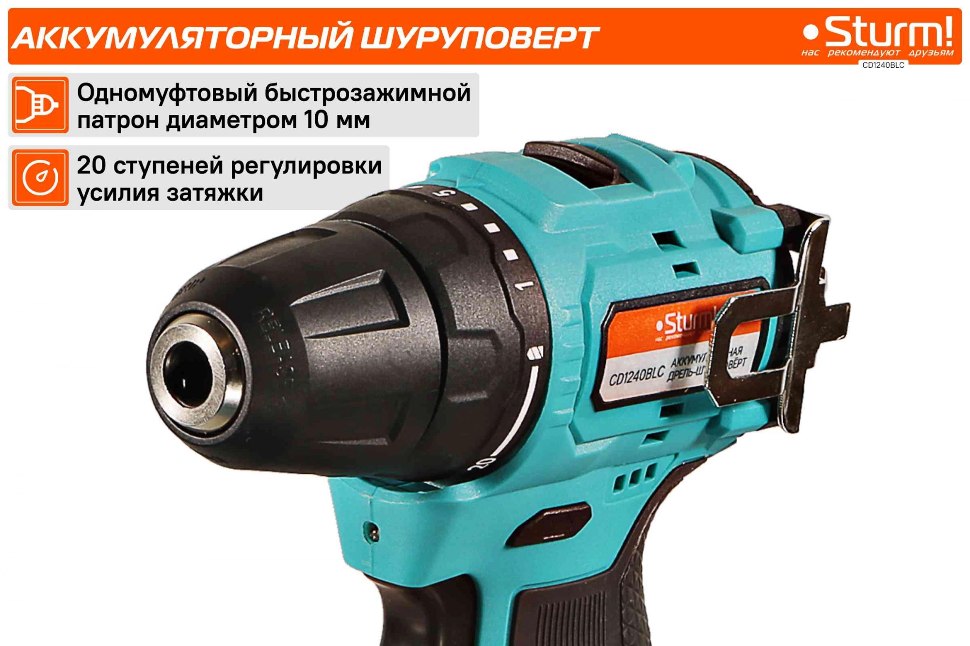 Шуруповерт Sturm! CD1240BLC аккум. патрон:быстрозажимной (кейс в комплекте)