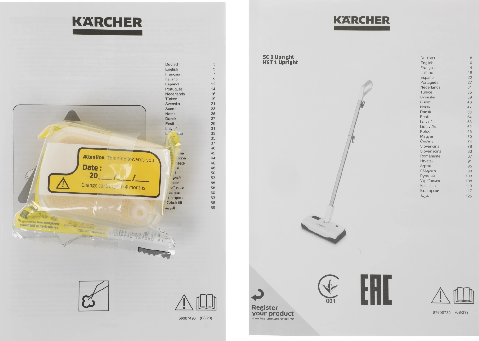Швабра паровая Karcher KST 1 Upright 1300Вт белый/ серый 1.513-564.0