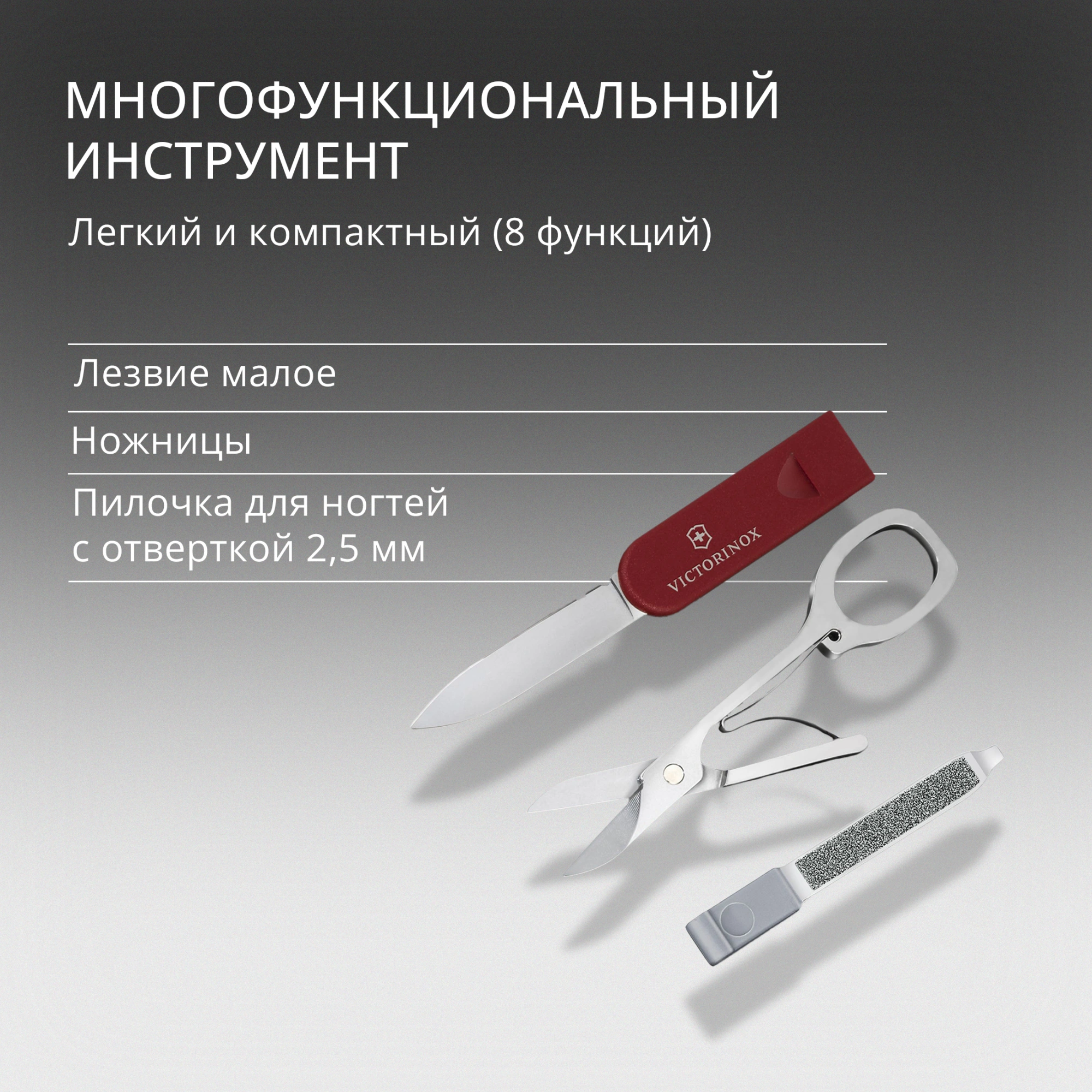 " 1. Кардхолдер 2. Резинка для наличных денег 3.Маленькое лезвие ножницы 5. Пилочка для ногтей 6. Отвертка 2.5 мм 7. Пинцет 8. Зубочистка 9.Булавка 10. Шариковая ручка