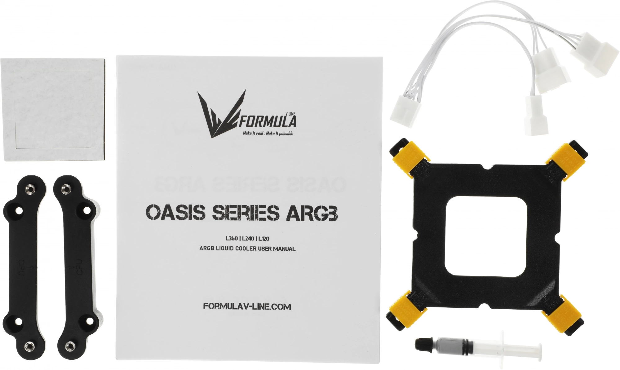 Система водяного охлаждения Formula Oasis L360 ARGB Soc-AM5/ AM4/ 1200/ 2066/ 1700/ 1851 белый 4-pin 1-27dB Al+Cu 360W Ret (OASIS L360 ARGB WH)