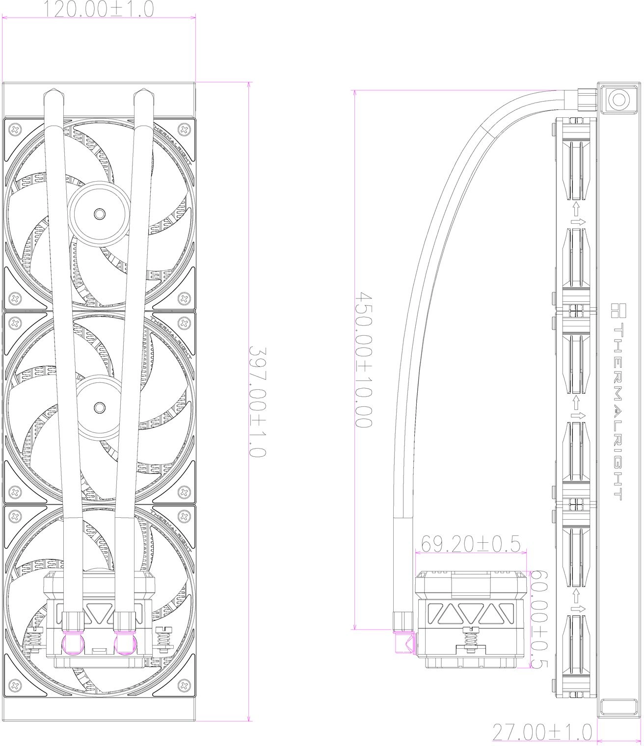 Система водяного охлаждения Thermalright Frozen Warframe 360 ARGB Soc-AM5/ AM4/ 1200/ 1700/ 1851 черный 4-pin 29.8dB Al LCD Ret (F-WFRAME-360-BL-ARGB)