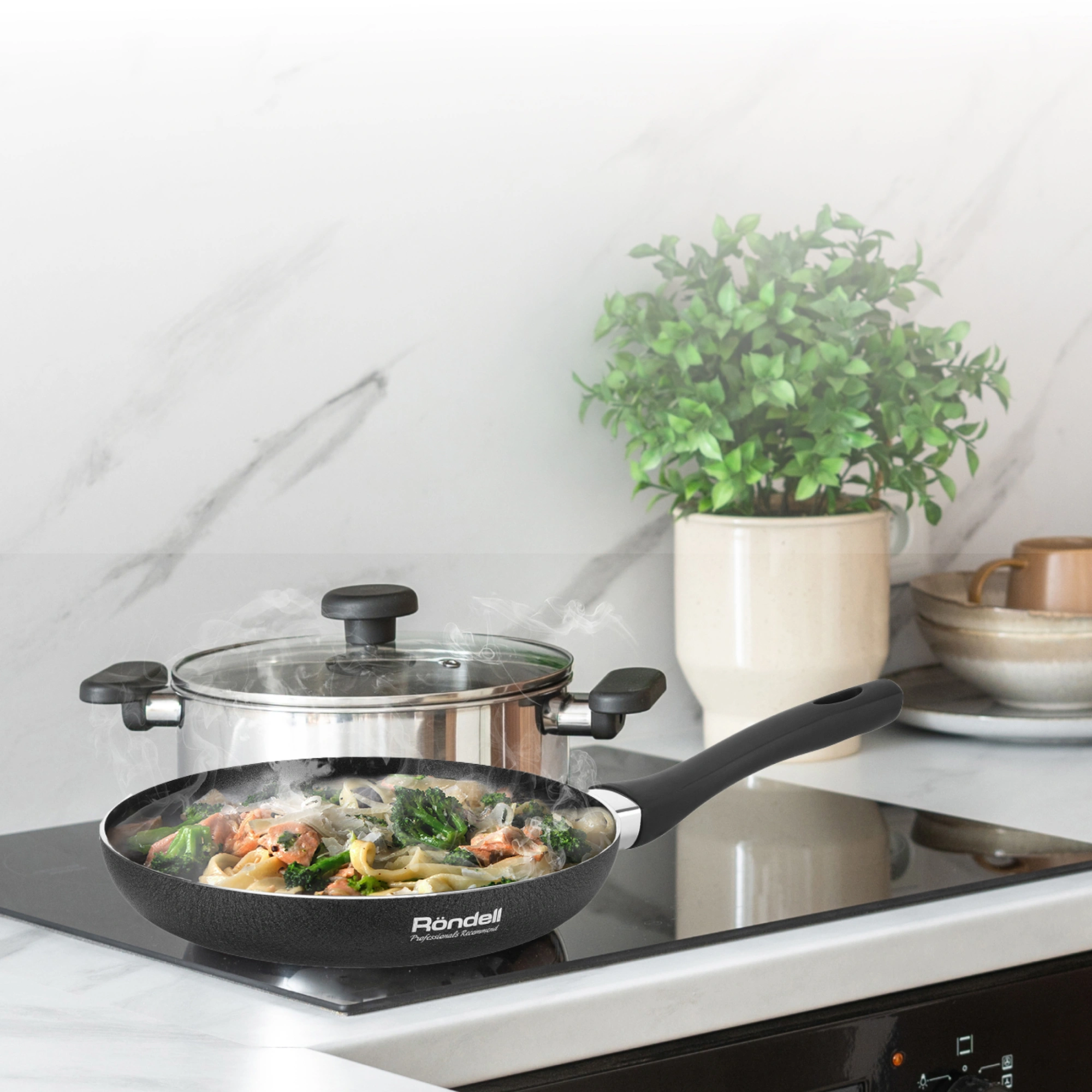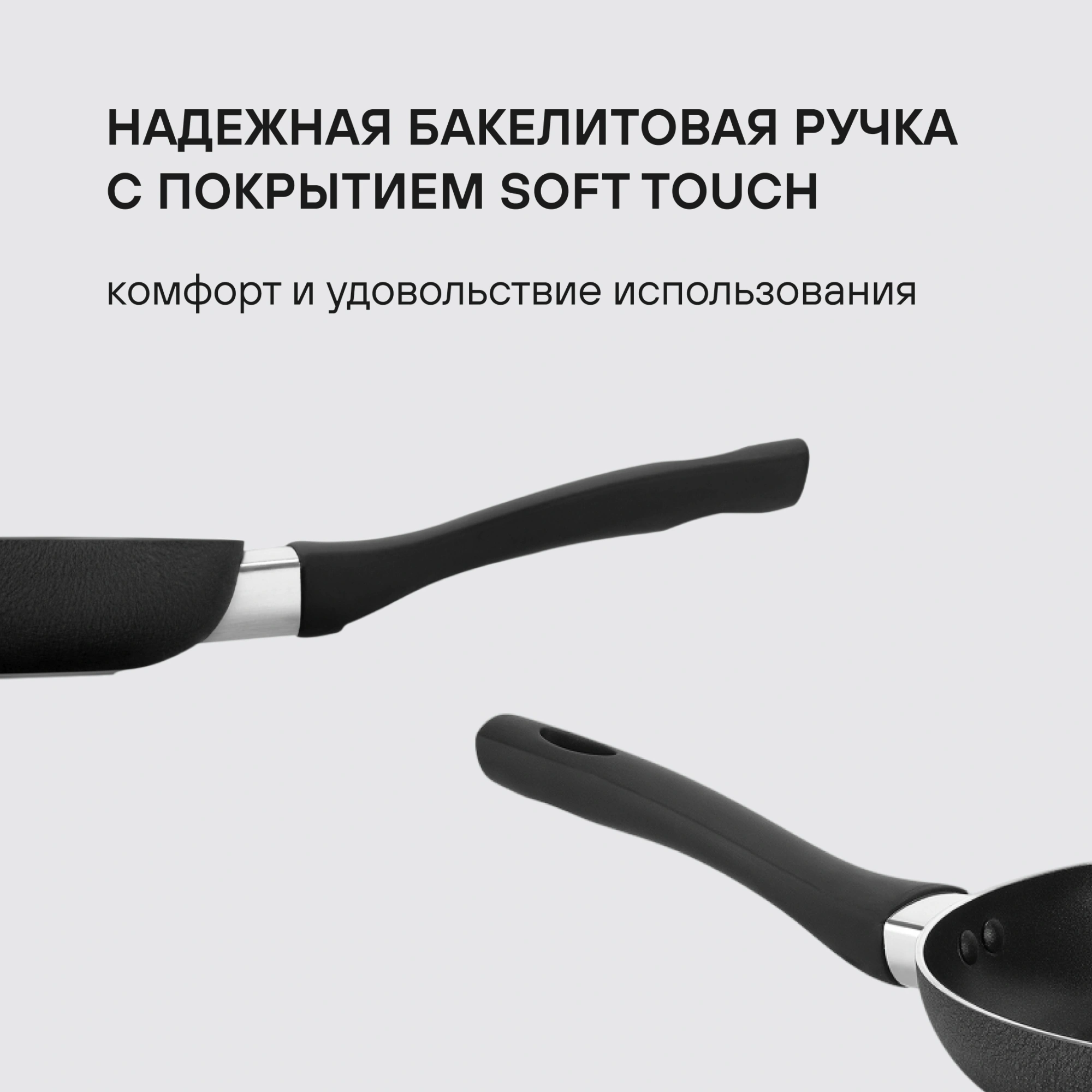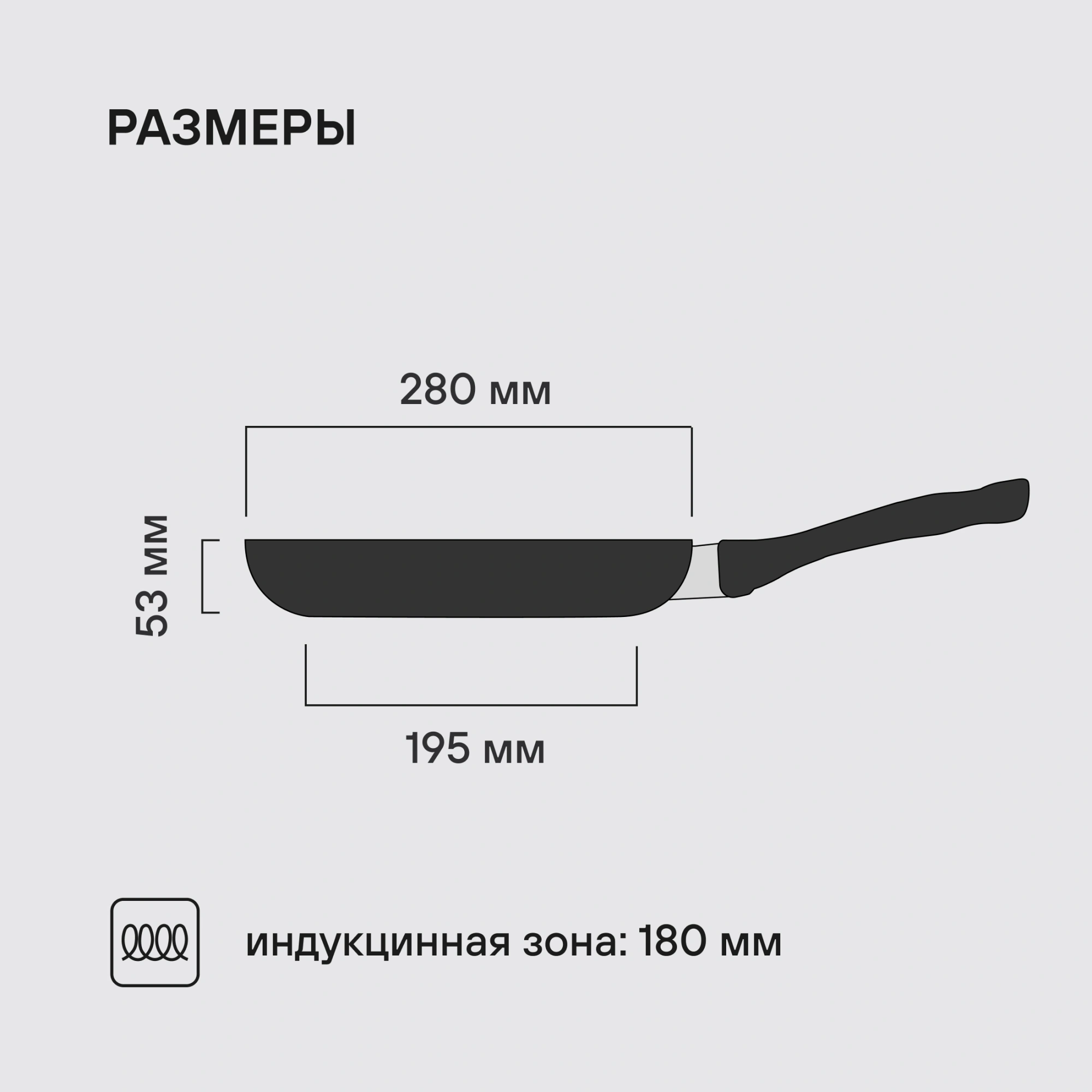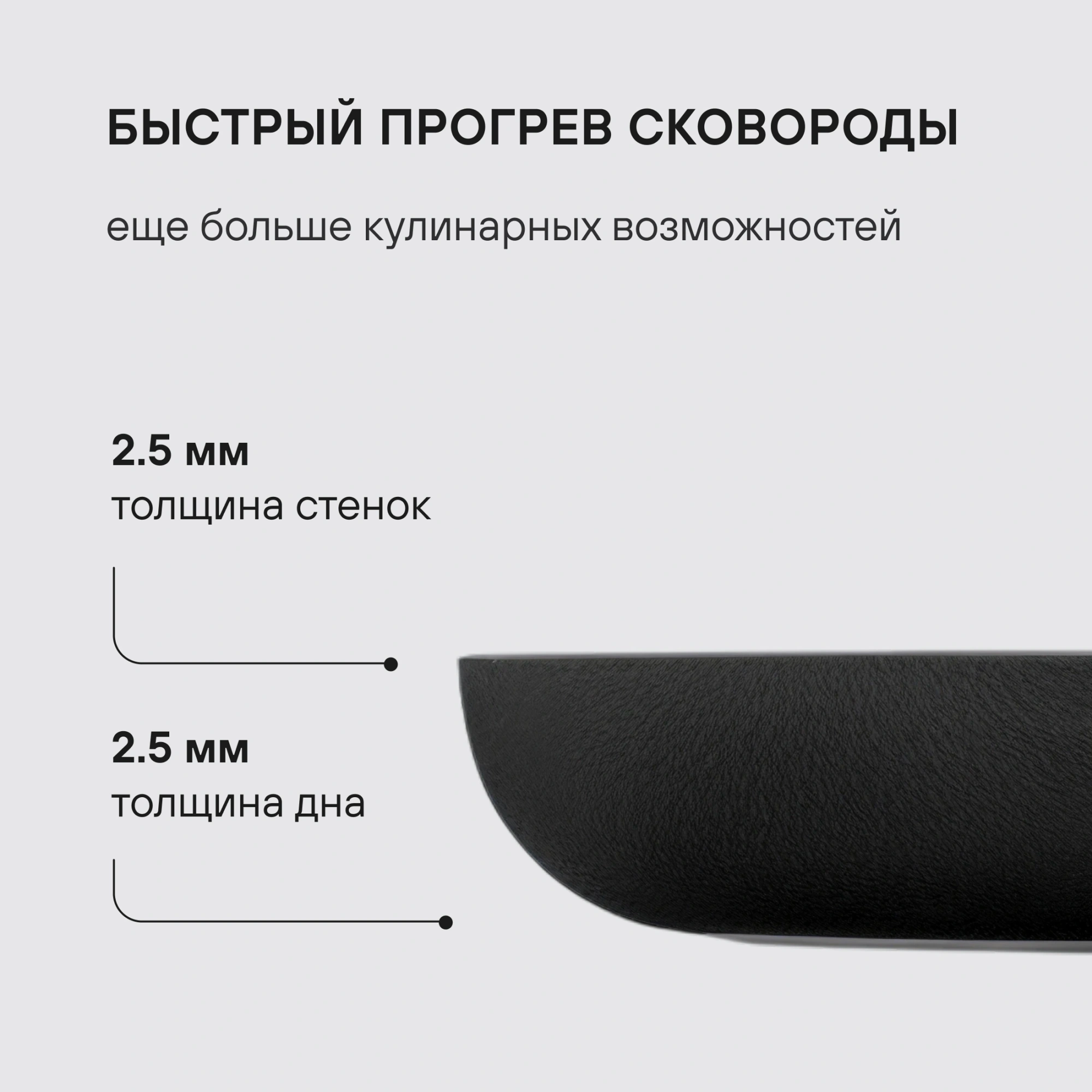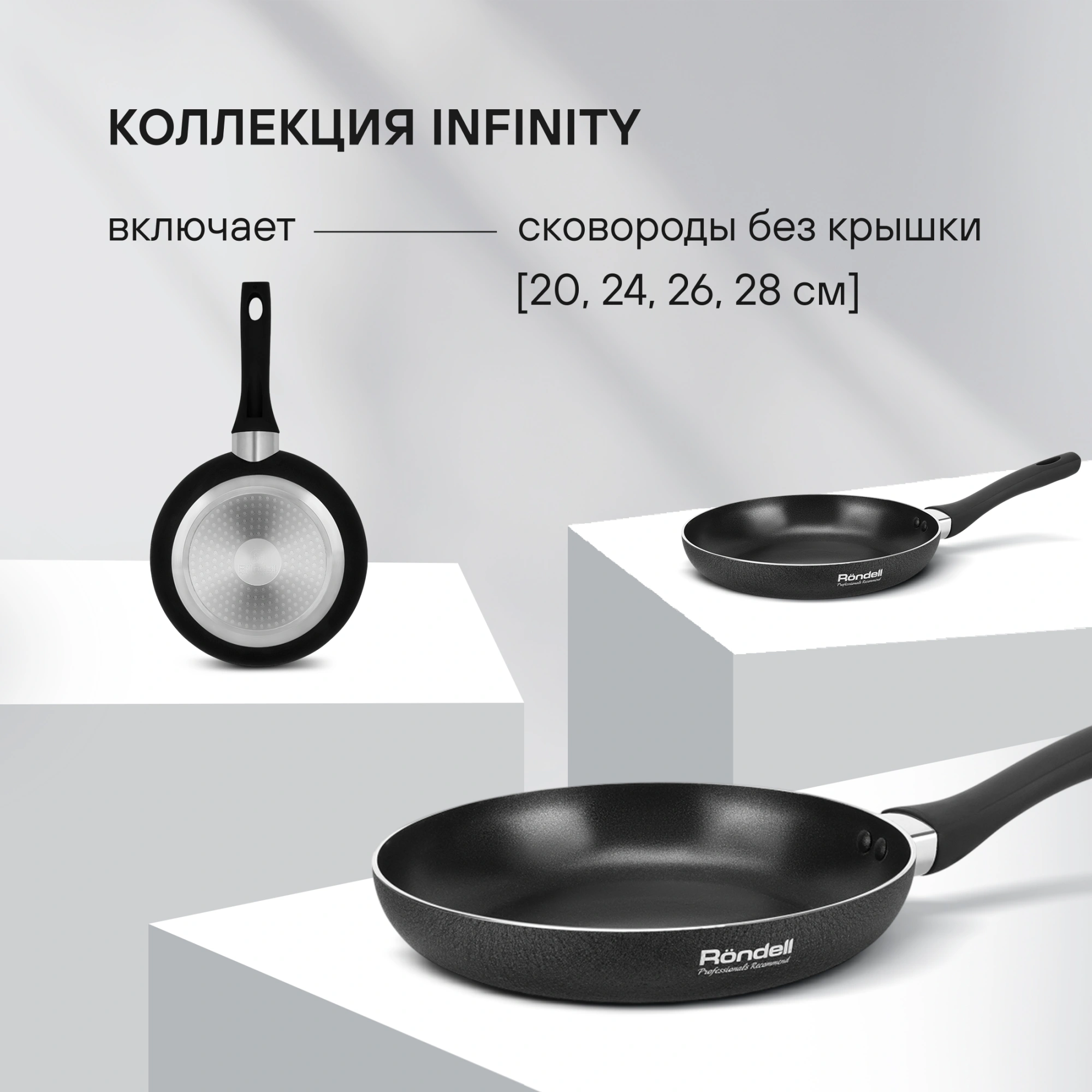 Сковорода Infinity выполнена из штампованного алюминия,  который отличается равномерным распределением тепла по поверхности,  что незаменимо для быстрого приготовления блюд. При изготовлении ручки использовался силикон и бакелит,  который не нагревается во время воздействия высоких температур.