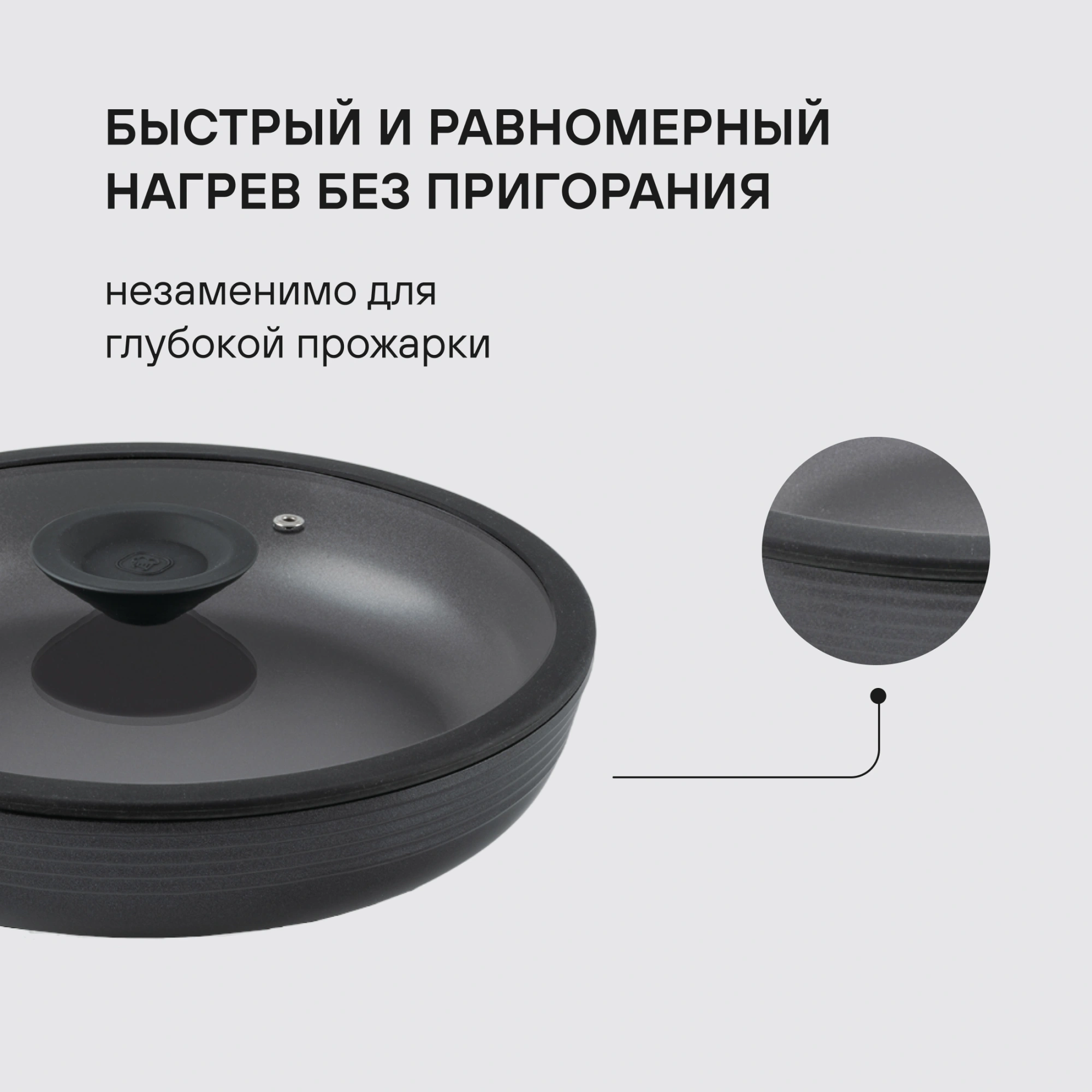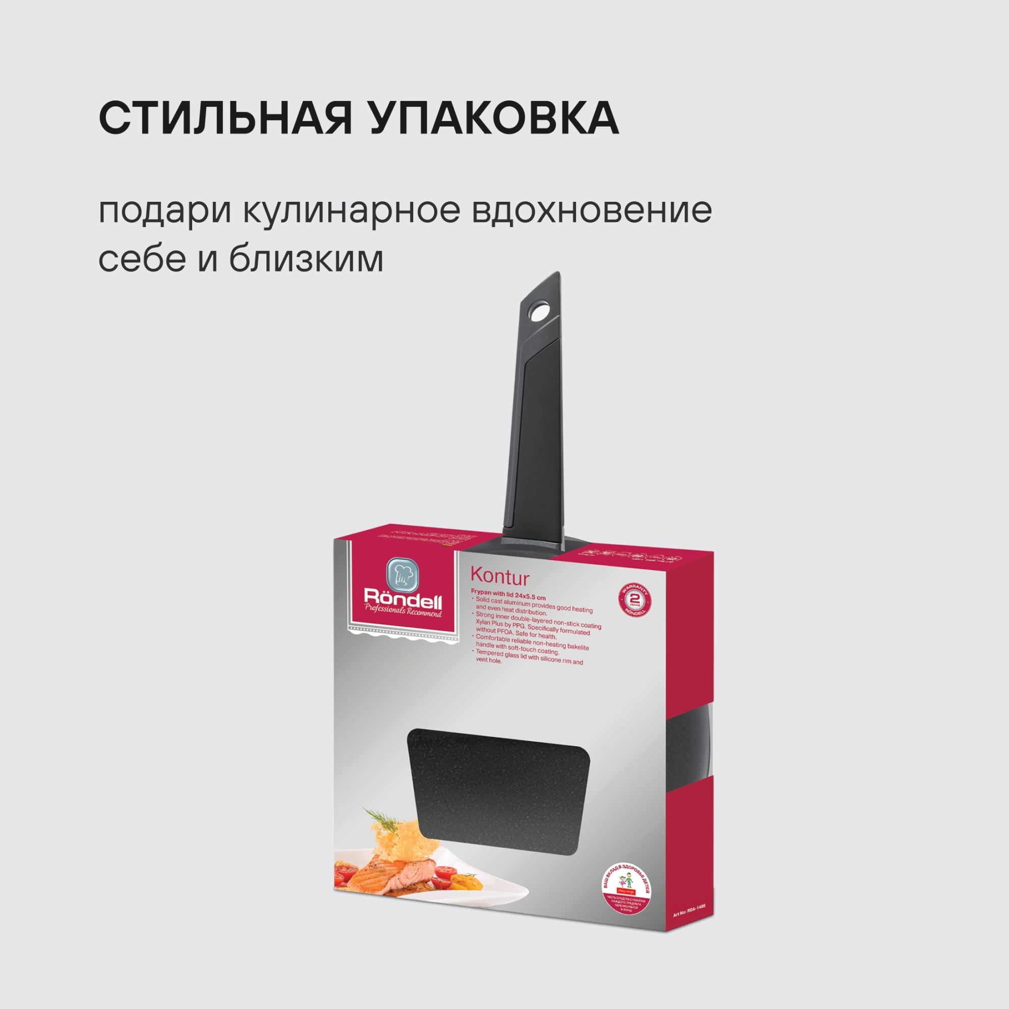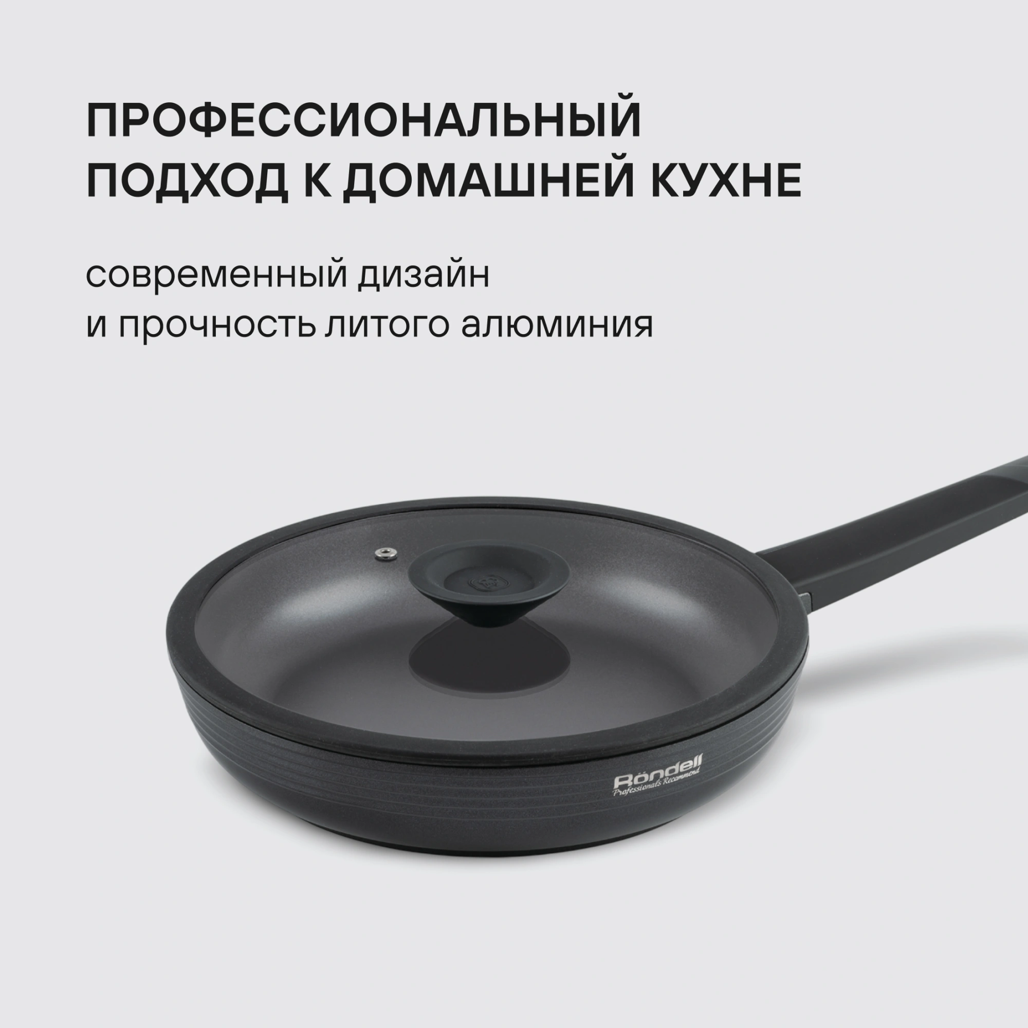 Сковорода Rondell Kontur RDA-1486 круглая 24см покрытие: Xylan Plus ручка несъемная (с крышкой) графитовый