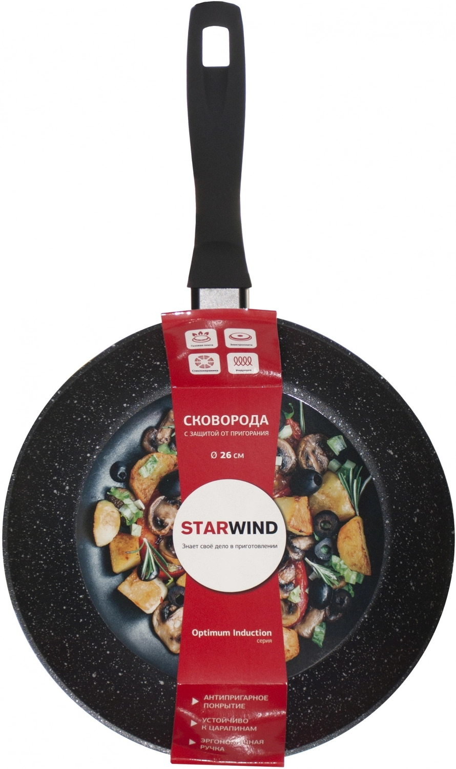 Сковорода Starwind Optimum induction SW-OPI2026 круглая 26см покрытие: Xylan Plus ручка несъемная (без крышки) черный