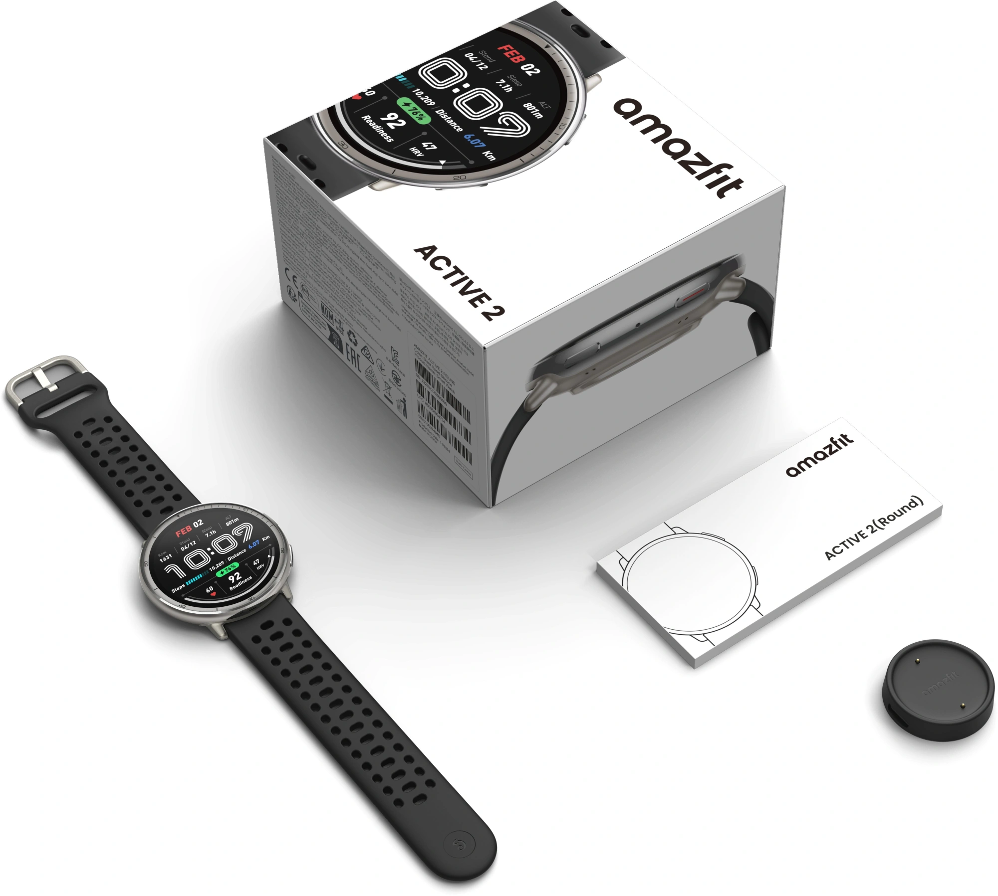 Смарт-часы Amazfit Active 2R A2437 43.9мм 1.32" AMOLED корп.серебристый рем.черный разм.брасл.:135-195мм (6970100377712)