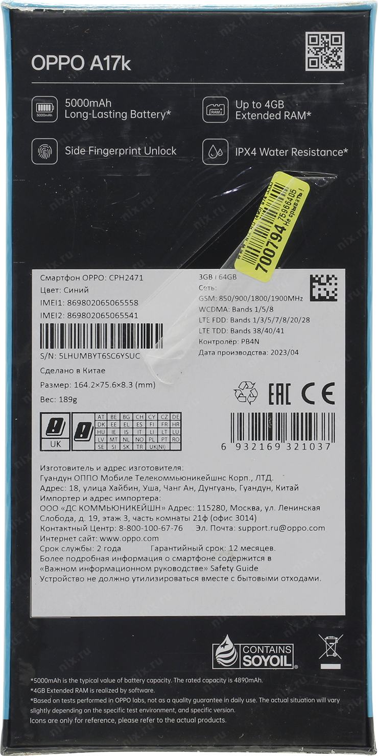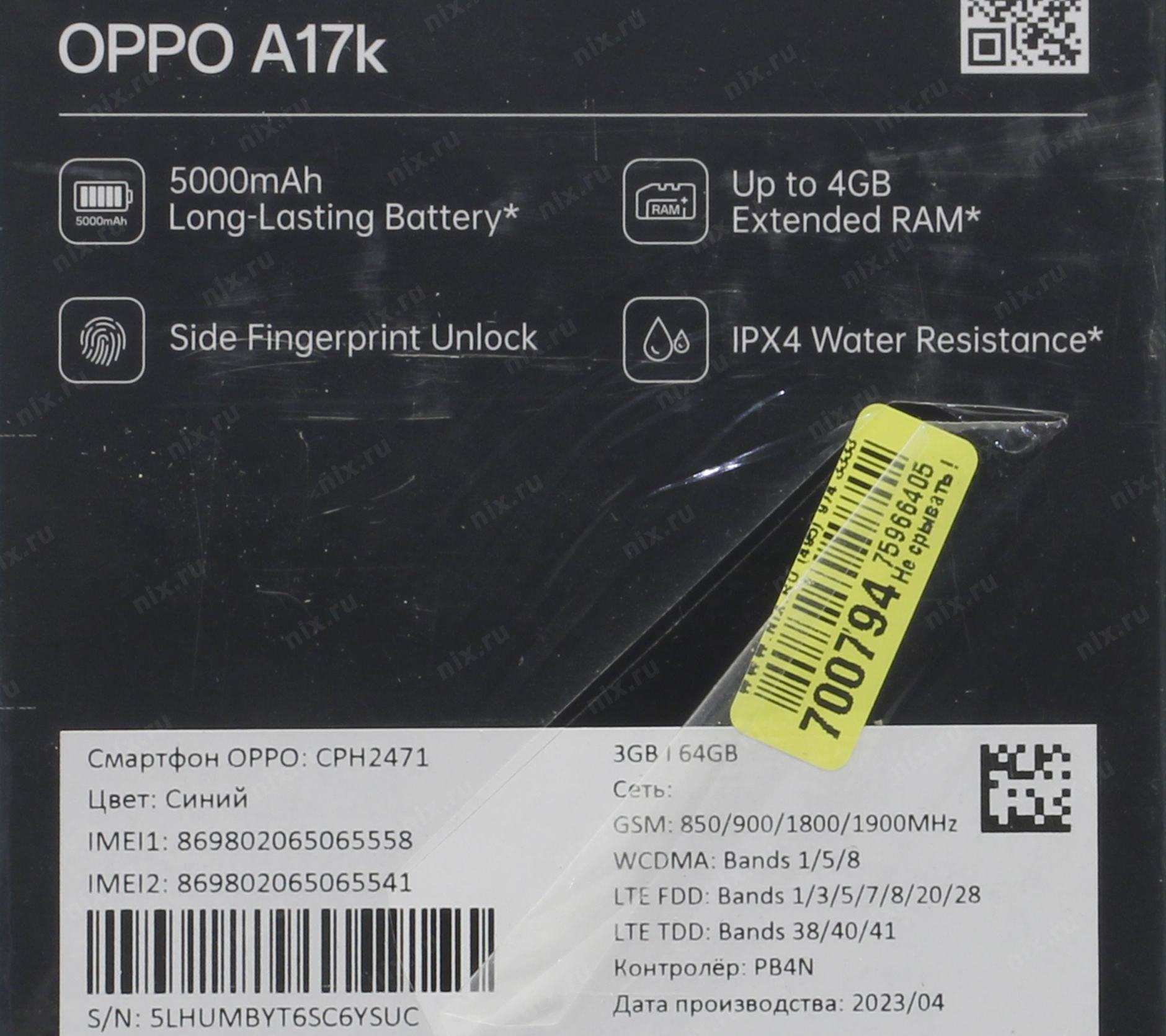 Смартфон OPPO A17k CPH2471 3/64Gb Blue