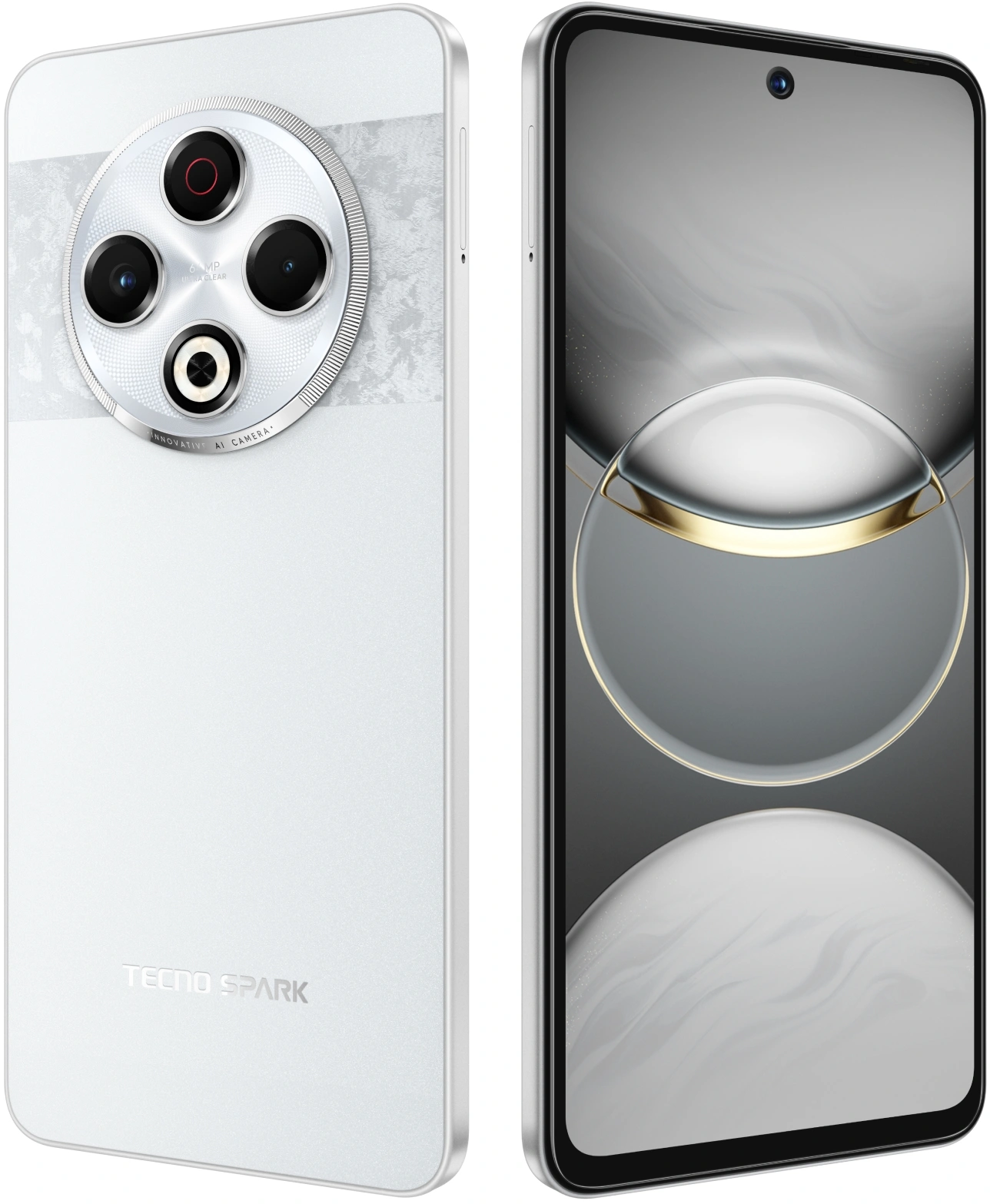 Смартфон Tecno Spark 30 256Gb 8Gb серебристый моноблок 3G 4G 2Sim 6.78" 1080x2436 Android 14 64Mpix 802.11 a/ b/ g/ n/ ac NFC GPS GSM900/ 1800 GSM1900 Protect FM A-GPS microSD max1024Gb KL6 256+8 ASTRAL ICE