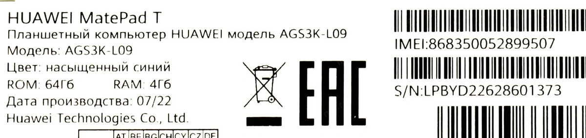 Объем накопителя планшета