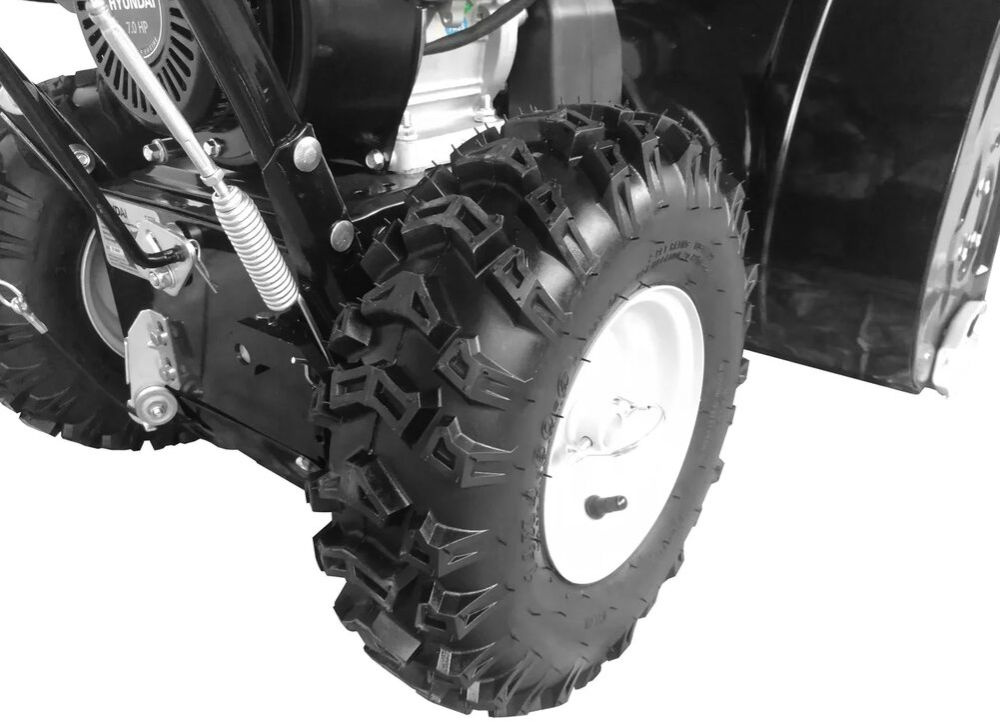 Высокая мощность и малый вес двигателя. Подогрев карбюратора. Увеличенный моторный ресурс более 2.000 моточасов. Низкий расход топлива АИ-92. Система изменения направления выброса снега. Агрессивные шнеки для любого типа снега. Шины Х-ТRAC обеспечивают лучшее сцепление с поверхностью. Привод колес.